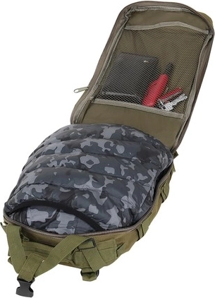 Αυτό το σακίδιο με χωρητικότητα 26 λίτρων είναι φτιαγμένο από ποιοτικό, αδιάβροχο υλικό ανθεκτικό στο σκίσιμο. Διαθέτει πέντε διαμερίσματα, συμπεριλαμβανομένης κύριας τσέπης με επιμήκη φερμουάρ για εύκολη πρόσβαση, εσωτερικές μικρότερες τσέπες και διχτυωτά χωρίσματα.