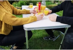 Ελαφρύ και συμπαγές σετ κάμπινγκ με πτυσσόμενο τραπέζι και τέσσερα σκαμπό, ιδανικό για εκδρομές, πικνίκ και κήπο. Το τραπέζι διαθέτει τριπλή ρύθμιση ύψους, γρήγορο άνοιγμα σε 1 λεπτό και πρακτική βαλιτσένια σχεδίαση για εύκολη μεταφορά. Η ανθεκτική κατασκευή αντέχει έως 40 kg στο τραπέζι και 90 kg σε κάθε σκαμπό.