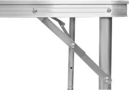 Όταν διπλωθεί, η επιφάνεια του τραπεζιού σχηματίζει μια συμπαγή βαλίτσα, στην οποία αποθηκεύονται όλα τα σκαμπό. Τα μάνταλα αποτρέπουν το τυχαίο άνοιγμα κατά τη μεταφορά.