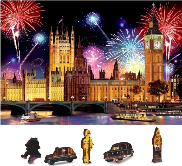 Αυτό το ξύλινο παζλ προσφέρει αξέχαστες στιγμές διασκέδασης χάρη στον διπλής όψης σχεδιασμό του, που επιτρέπει συναρμολόγηση τόσο με βάση την εικόνα όσο και με βάση το μοτίβο. Με τα μοναδικά διαμορφωμένα κομμάτια που απεικονίζουν γνωστά λονδρέζικα κτήρια, αντικείμενα ή ζώα, αυτό το παζλ είναι πιο απαιτητικό στην ολοκλήρωση, αυξάνοντας την ικανοποίηση της επιτυχούς συναρμολόγησης.