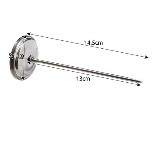 Το θερμόμετρο έχει σχεδιαστεί ώστε να ικανοποιεί τις ανάγκες τόσο των οικιακών μαγείρων όσο και των επαγγελματιών. Με τη λεπτή βελόνα που διεισδύει εύκολα στο κρέας, ελαχιστοποιεί τη φθορά του προϊόντος. Ιδανικό για έλεγχο της εσωτερικής θερμοκρασίας μεγάλων κομματιών κρέατος όπως ζαμπόν ή μπέικον.