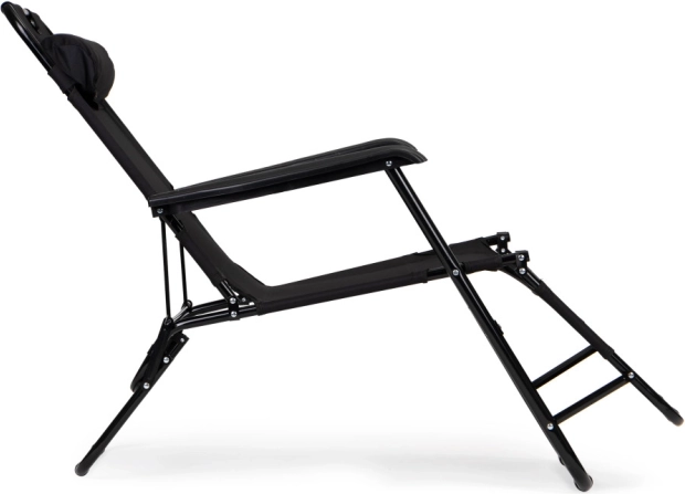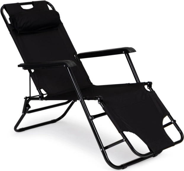 Προσκέφαλο - Το παρεχόμενο προσκέφαλο βελτιώνει την άνεση κατά τη διάρκεια της ξεκούρασης. Το μαξιλάρι προσφέρει εξαιρετική στήριξη για τον αυχένα και το κεφάλι. Η ξαπλώστρα είναι κατασκευασμένη από ανθεκτικό ύφασμα που προσαρμόζεται στο σώμα σας, προσφέροντας ακόμη πιο ευχάριστη υπαίθρια χαλάρωση. Χάρη στον αναδιπλούμενο σχεδιασμό, η ξαπλώστρα είναι ιδανική για διακοπές και αποθηκεύεται εύκολα μετά τη θερινή σεζόν, εξοικονομώντας πολύτιμο χώρο.