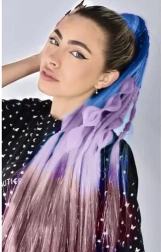 Ο συνδυασμός μπλε, μωβ και ροζ με διακριτικές λαμπερές τούφες φωτίζει αμέσως κάθε χτένισμα και του χαρίζει μοναδικό χαρακτήρα.
