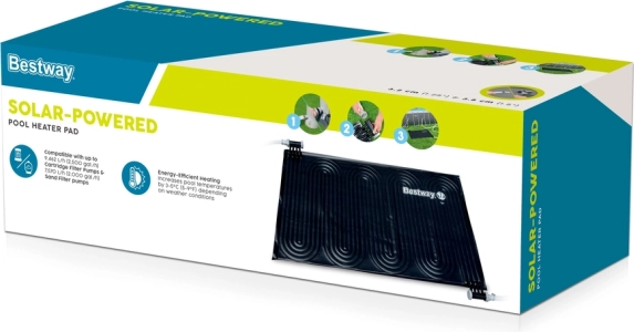 Σταματήστε να σπαταλάτε ενέργεια για τη θέρμανση του νερού της πισίνας. Το ηλιακό πάνελ Bestway θα σας γλιτώσει κόπο, χρόνο και χρήματα. Αρκεί να το συνδέσετε στο σύστημα φιλτραρίσματός σας και ο ήλιος θα αναλάβει τα υπόλοιπα. Αυτό το πάνελ όχι μόνο θερμαίνει σημαντικά το νερό, αλλά είναι επίσης οικολογικό και οικονομικό.