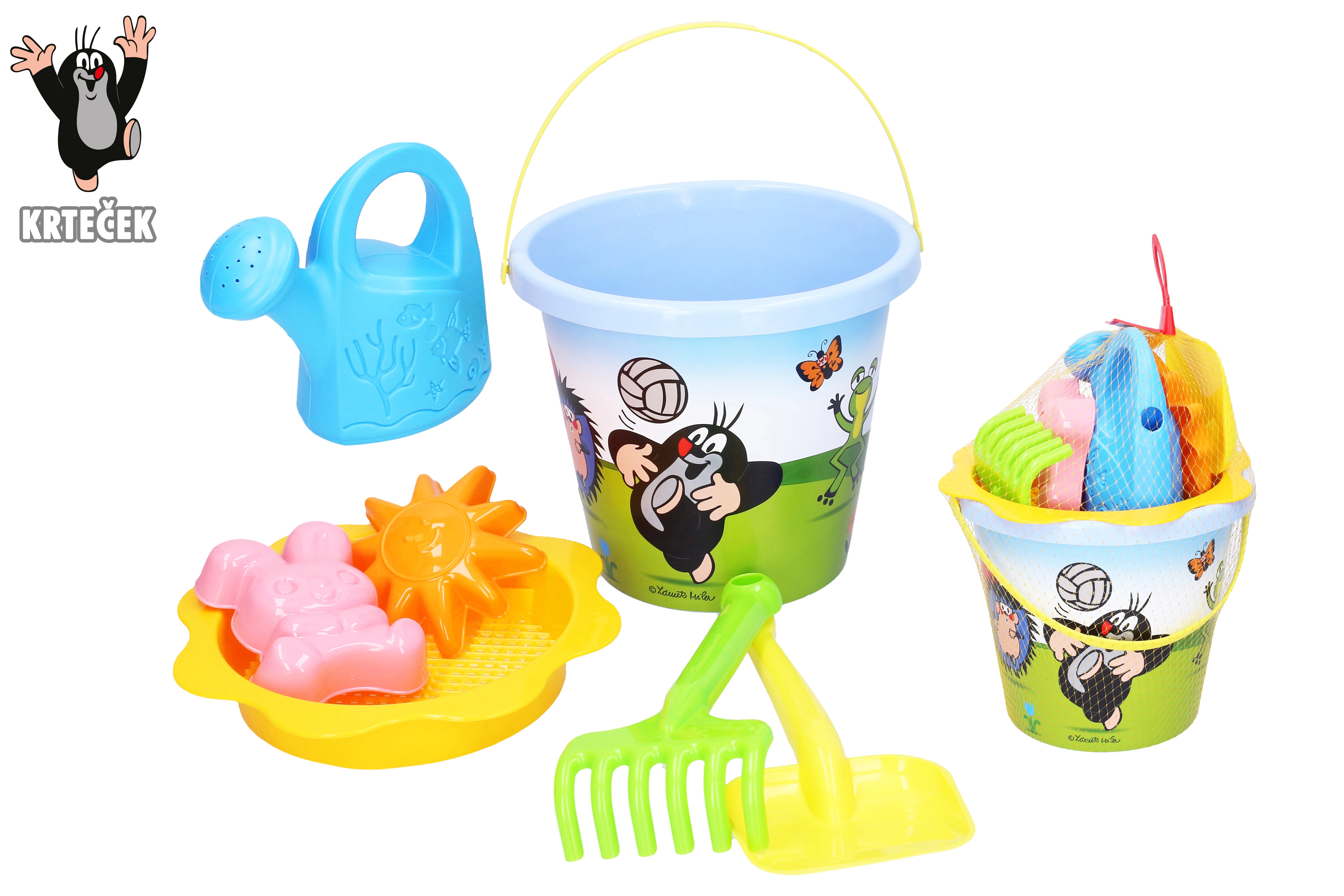 Ανακαλύψτε τη μαγεία του παιχνιδιού στην άμμο με το αγαπημένο θέμα KRTEK. Το πρακτικό σετ σε μπλε χρώμα περιλαμβάνει ό,τι χρειάζονται τα παιδιά για ώρες δημιουργικής διασκέδασης – από κουβαδάκι χωρητικότητας 3,5 l μέχρι σουρωτήρι, φορμάκια και ποτιστήρι. Χάρη στο στιβαρό πλαστικό, το σετ είναι ελαφρύ, ασφαλές και ανθεκτικό στη συνήθη φθορά.