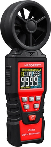Το HABOTEST HT625B είναι ένα αξιόπιστο ανεμόμετρο με οκτάφυλλο ρότορα και ευαίσθητο αισθητήρα ρουλεμάν για σταθερές και γρήγορες μετρήσεις. Η έγχρωμη οθόνη υψηλής ανάλυσης εμφανίζει τιμές έως 9999 counts, συμπεριλαμβανομένου δείκτη μπαταρίας. Μπορείτε να επιλέξετε μεταξύ πολλών μονάδων ταχύτητας (m/s, km/h, mph, ft/s, κόμβοι) και όγκου αέρα (CFM/CMM/CMS), ώστε να προσαρμόσετε εύκολα τη συσκευή στις εργασιακές σας συνήθειες.