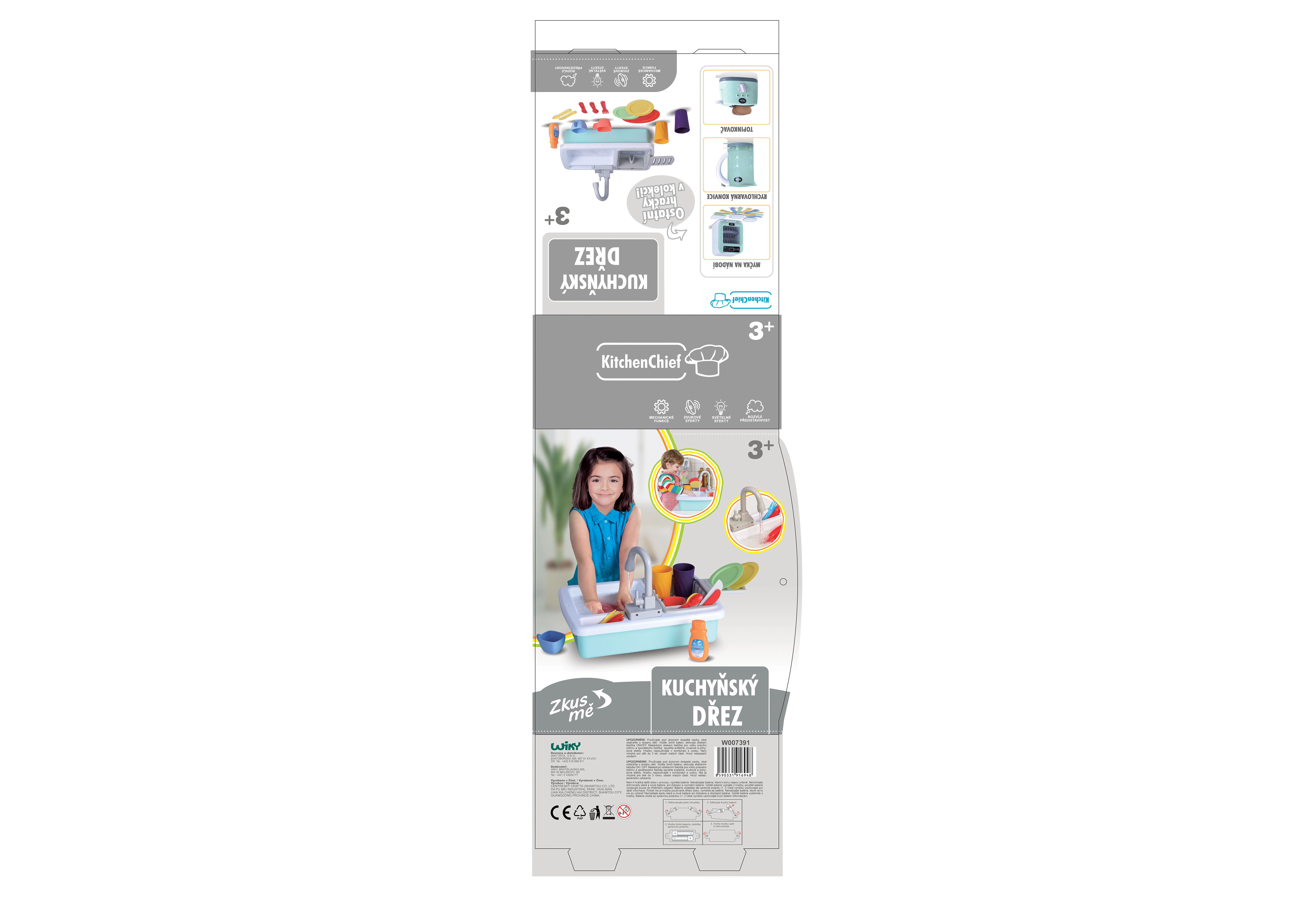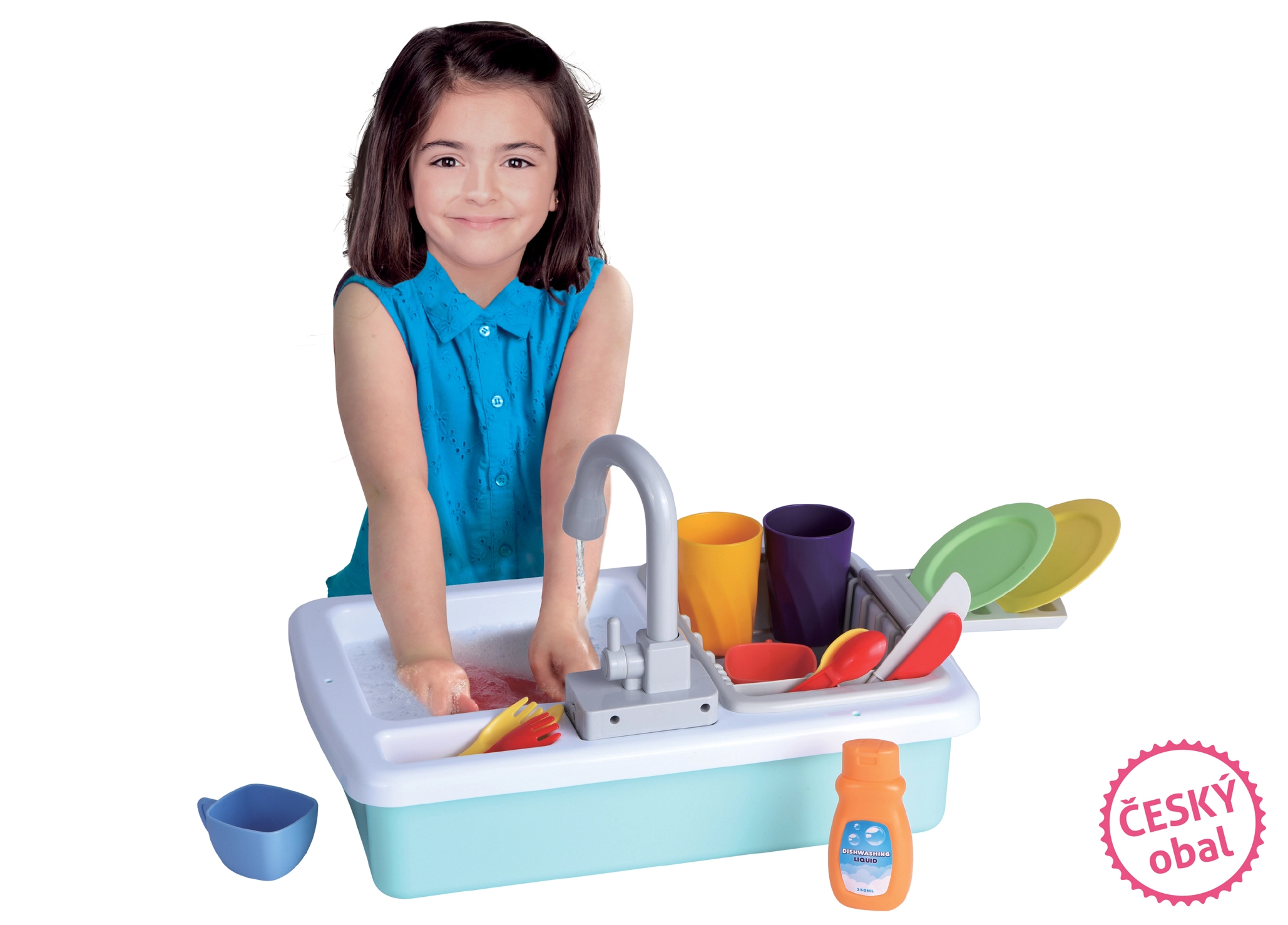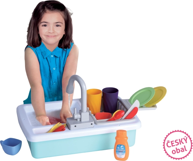 Στη συσκευασία περιλαμβάνεται πρακτικός εξοπλισμός κουζίνας, ώστε τα παιδιά να ξεκινήσουν αμέσως: κούπες, πιατάκια, φλιτζάνια, μαχαιροπίρουνα και επίσης υγρό πιάτων για ακόμη πιο ρεαλιστικό παιχνίδι. Ο νεροχύτης είναι εξαιρετικό συμπλήρωμα για κάθε παιδική κουζίνα και προσφέρει διασκέδαση για πολλές ώρες.