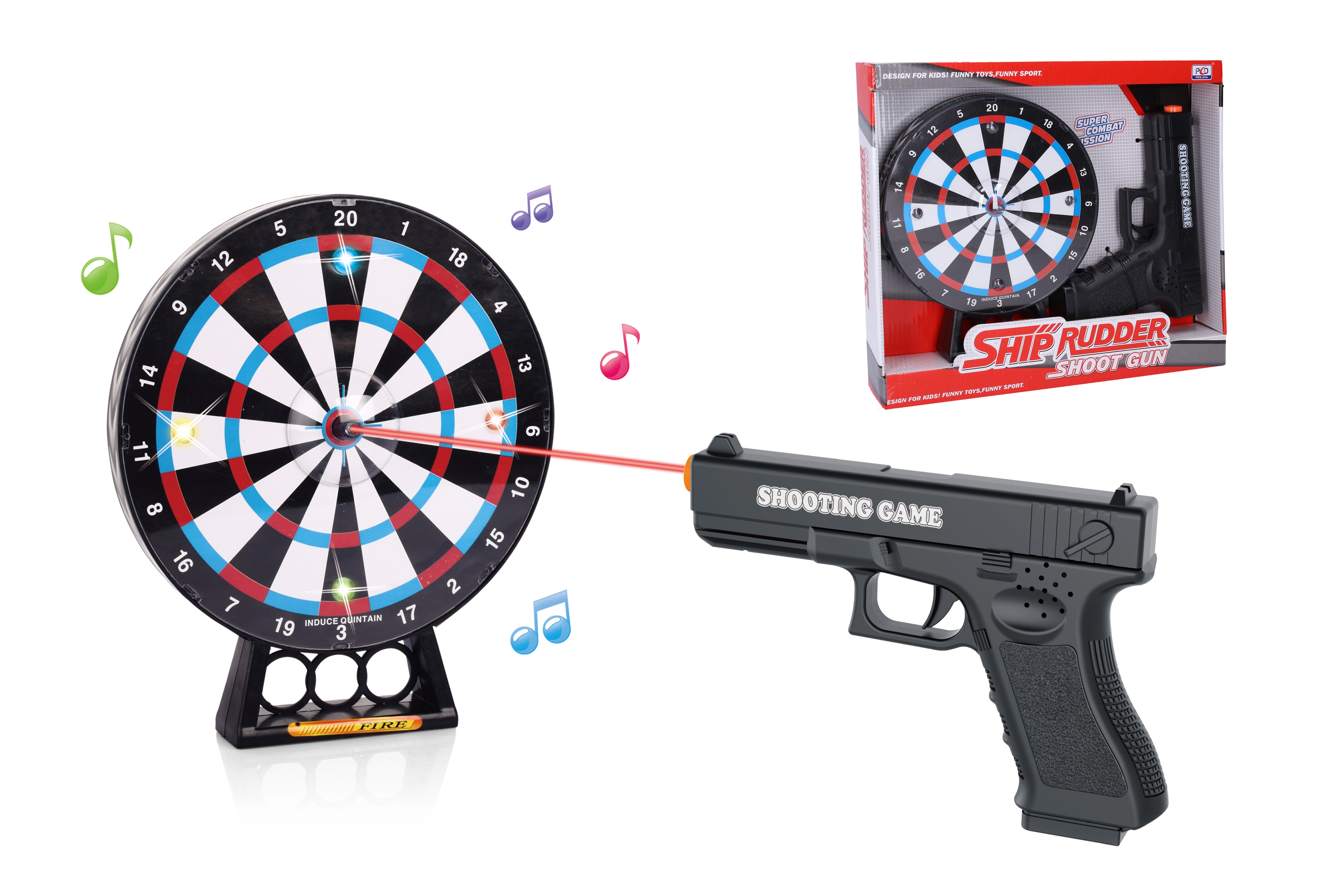 Βελτιώστε τις σκοπευτικές σας ικανότητες με αυτό το υπέροχο λέιζερ πιστόλι και στόχο. Σημαδέψτε, πυροβολήστε και απολαύστε τα φωτεινά και ηχητικά εφέ όταν πετυχαίνετε το στόχο.