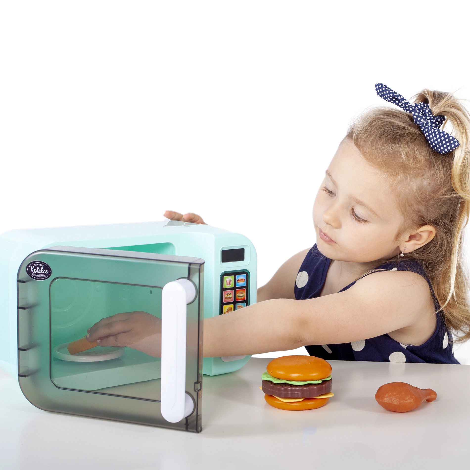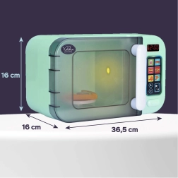 Αυτός ο κομψός παιδικός φούρνος μικροκυμάτων είναι ιδανικό συμπλήρωμα για κάθε παιδική κουζίνα. Με την ενεργοποίηση προγράμματος, ο δίσκος στο εσωτερικό αρχίζει να περιστρέφεται, ο φούρνος φωτίζει και παράγει ήχους όπως μια πραγματική συσκευή. Χάρη στην οθόνη αφής, τα παιδιά “επιλέγουν” εύκολα προγράμματα και μαθαίνουν τα βασικά των δραστηριοτήτων κουζίνας μέσα από το παιχνίδι.