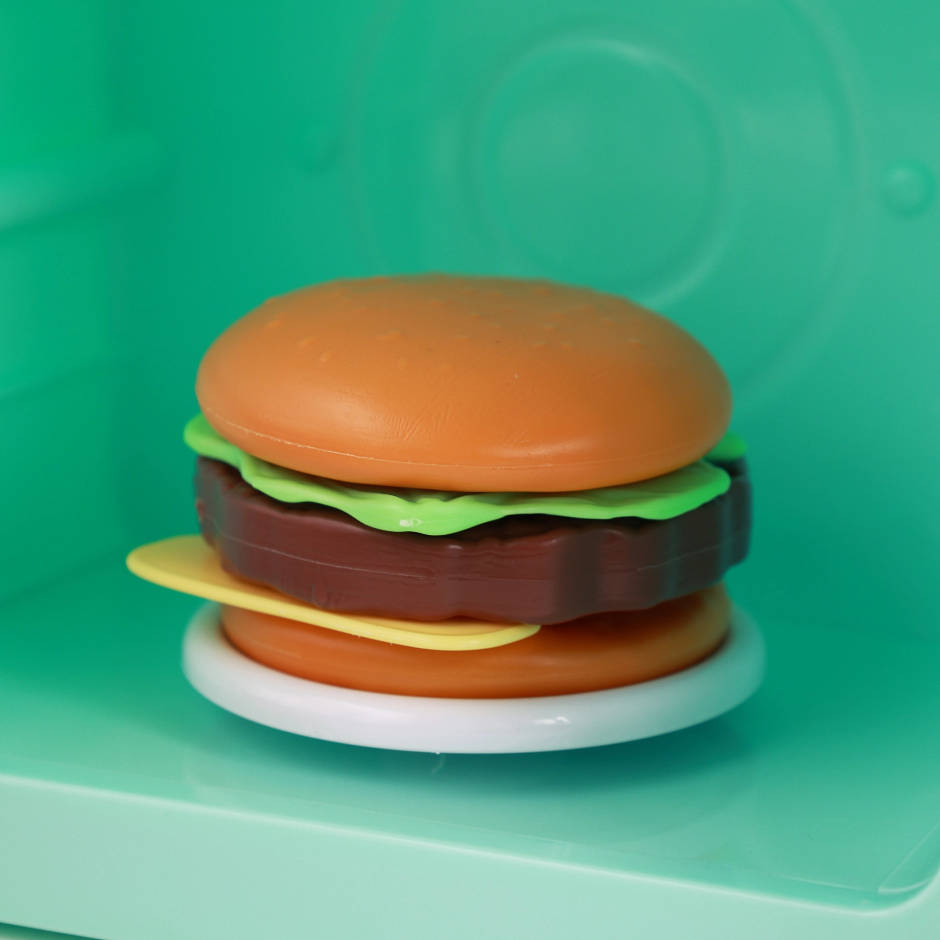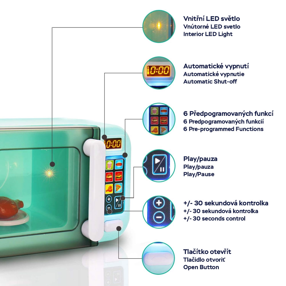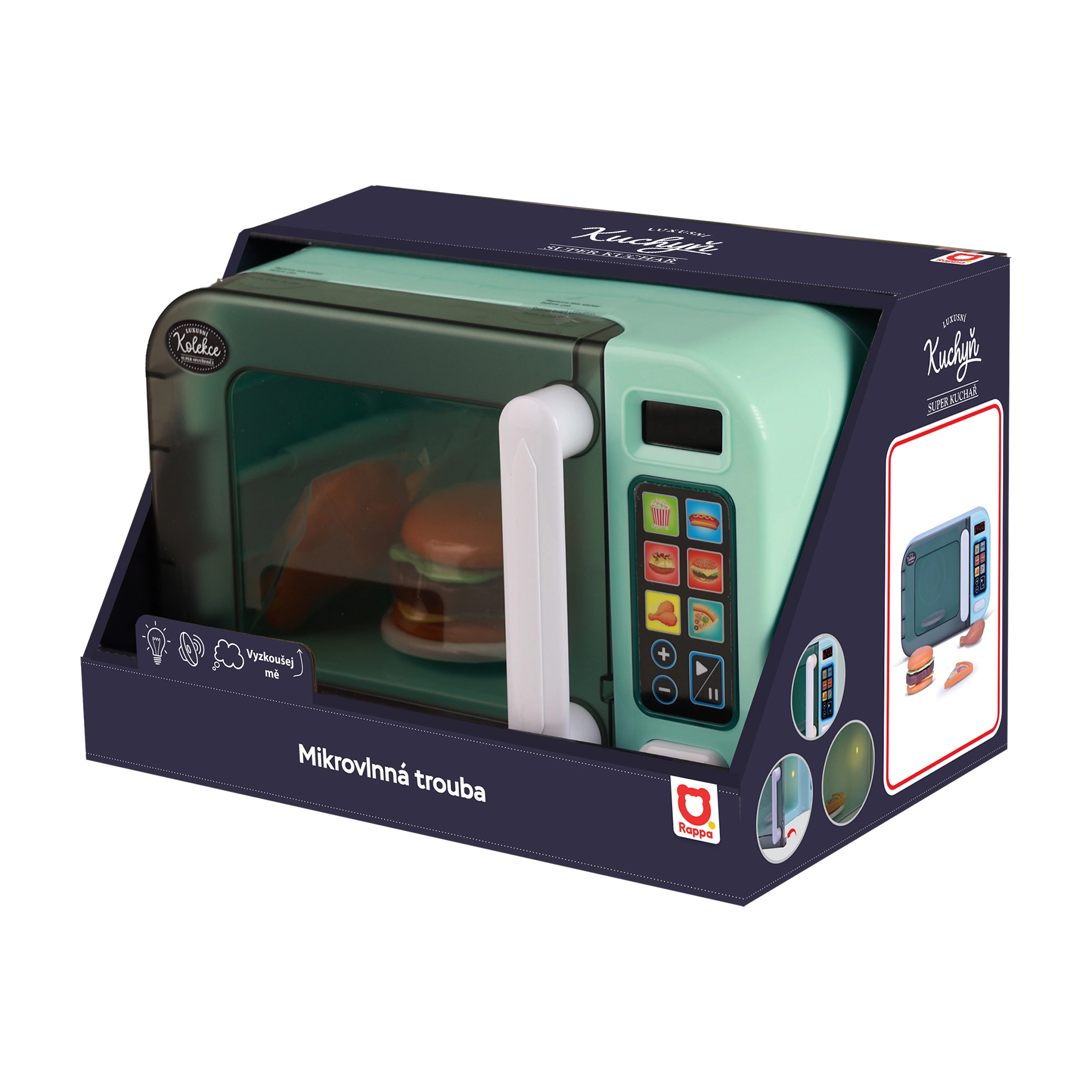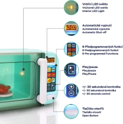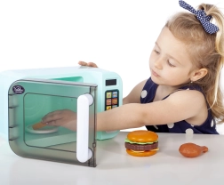 Με την εκκίνηση ενός προγράμματος, ο φούρνος μικροκυμάτων φωτίζει, παράγει ήχους όπως ένας πραγματικός και ο δίσκος με το παιχνίδι-γεύμα περιστρέφεται – ιδανικό για πιστευτό παιχνίδι μαγειρικής.