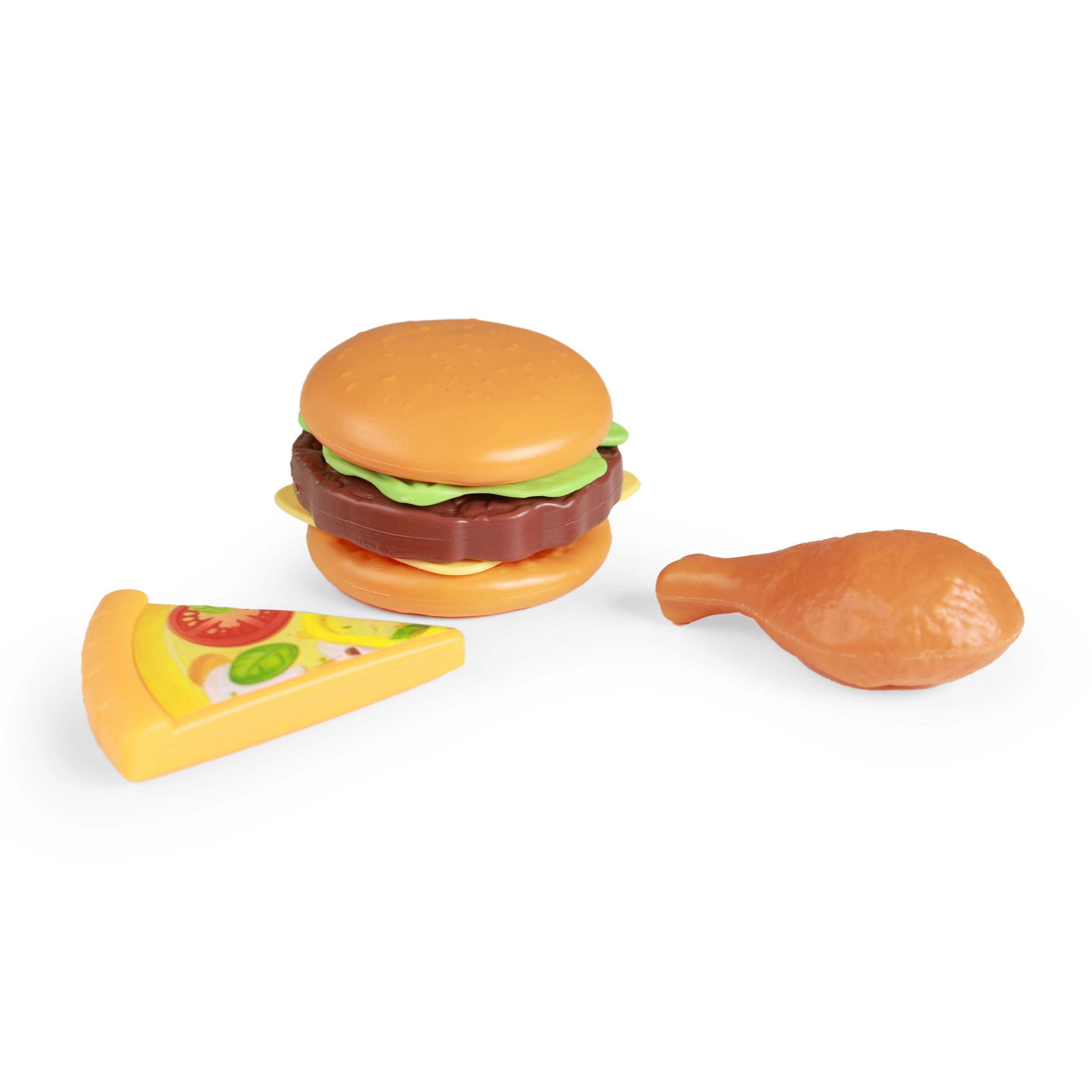 Η συσκευασία περιλαμβάνει χάμπουργκερ, κοτόπουλο και πίτσα. Τα αξεσουάρ επεκτείνουν τις δυνατότητες παιχνιδιού, ενισχύουν τη φαντασία και το role-play στην παιδική κουζίνα.