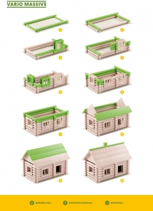 Ανακαλύψτε τη χαρά της κατασκευής ξυλόσπιτων με μια φυσική ξύλινη κατασκευαστική σειρά που καλλιεργεί τη δημιουργικότητα, τη φαντασία και τη λεπτή κινητικότητα. Οι λείες οξείες ράβδοι διαμέτρου 15 mm εφαρμόζουν με ασφάλεια χάρη στους ακριβείς συνδέσμους και διατηρούν τη σταθερότητα του τελικού κτίσματος. Τα μοντέλα μπορούν να συναρμολογηθούν και να αποσυναρμολογηθούν επανειλημμένα, ώστε να επιστρέφετε ξανά και ξανά στα αγαπημένα σας έργα.