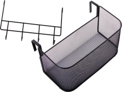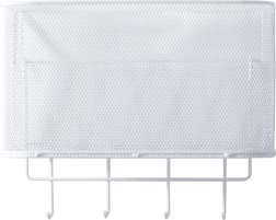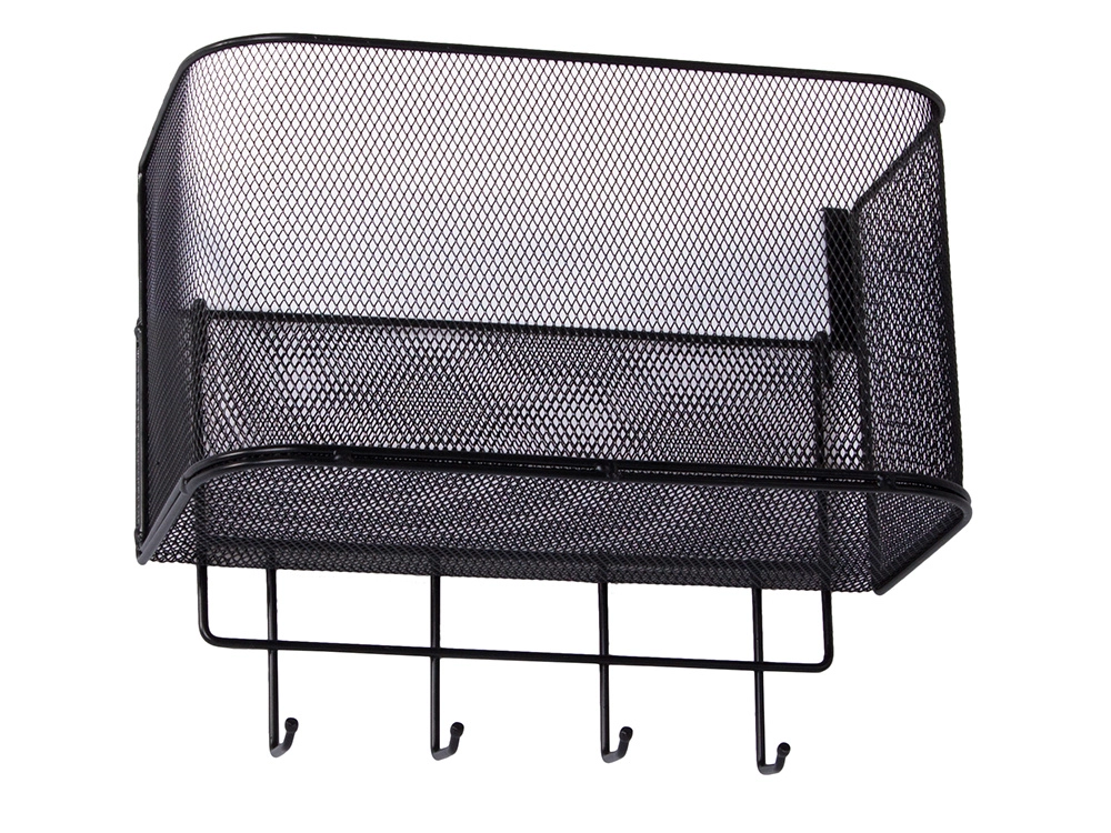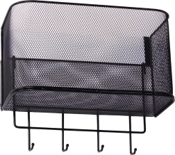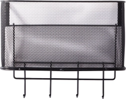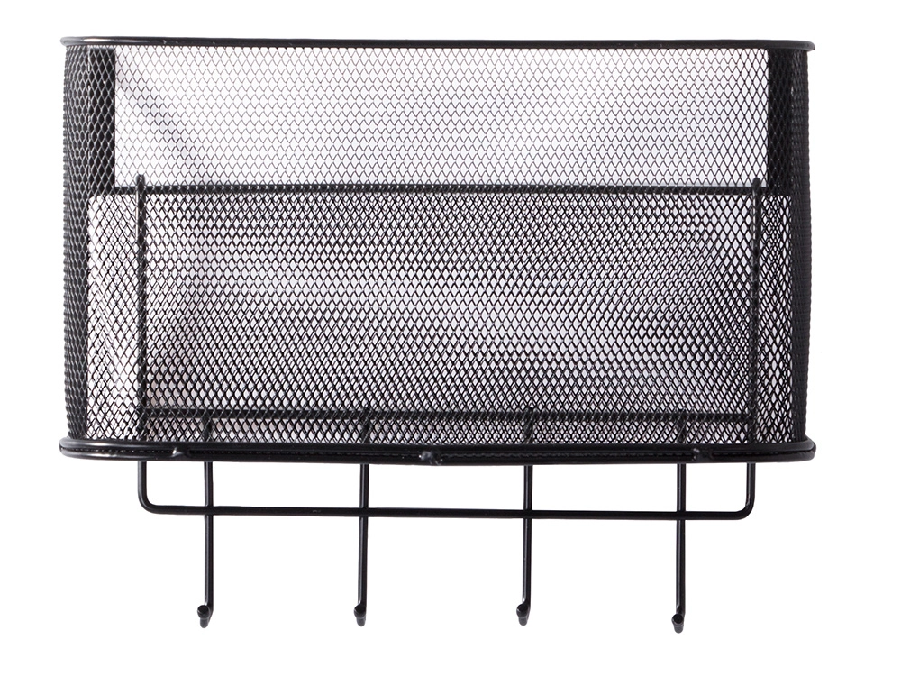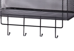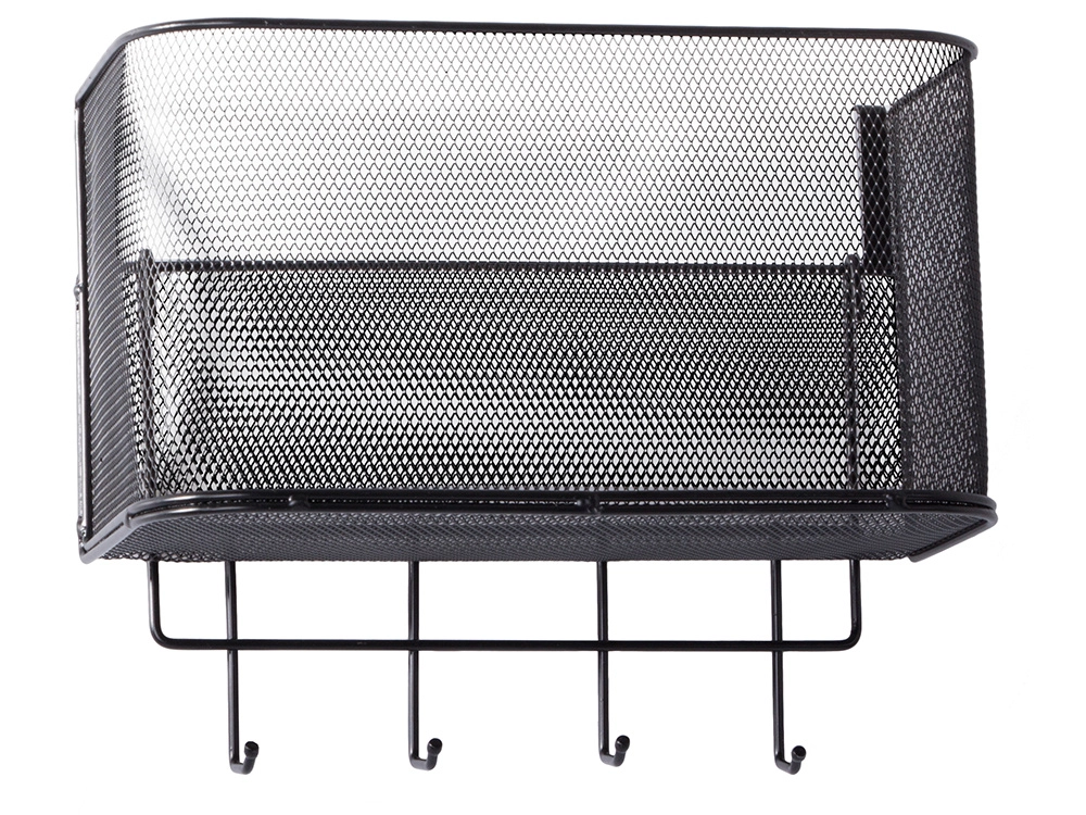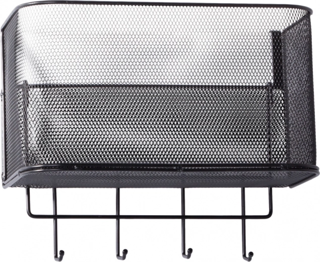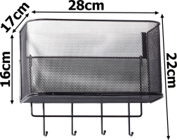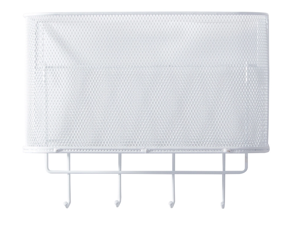 Αυτό το μεταλλικό κρεμαστό καλαθάκι είναι όχι μόνο πρακτικό αλλά και στιλάτο. Είναι ευρύχωρο και επιτρέπει την αποθήκευση διαφόρων αντικειμένων, από αξεσουάρ κουζίνας μέχρι είδη περιποίησης. Τα 4 πρόσθετα γαντζάκια μπορείτε να τα χρησιμοποιήσετε για να κρεμάσετε κλειδιά, πετσέτες ή τσάντες.