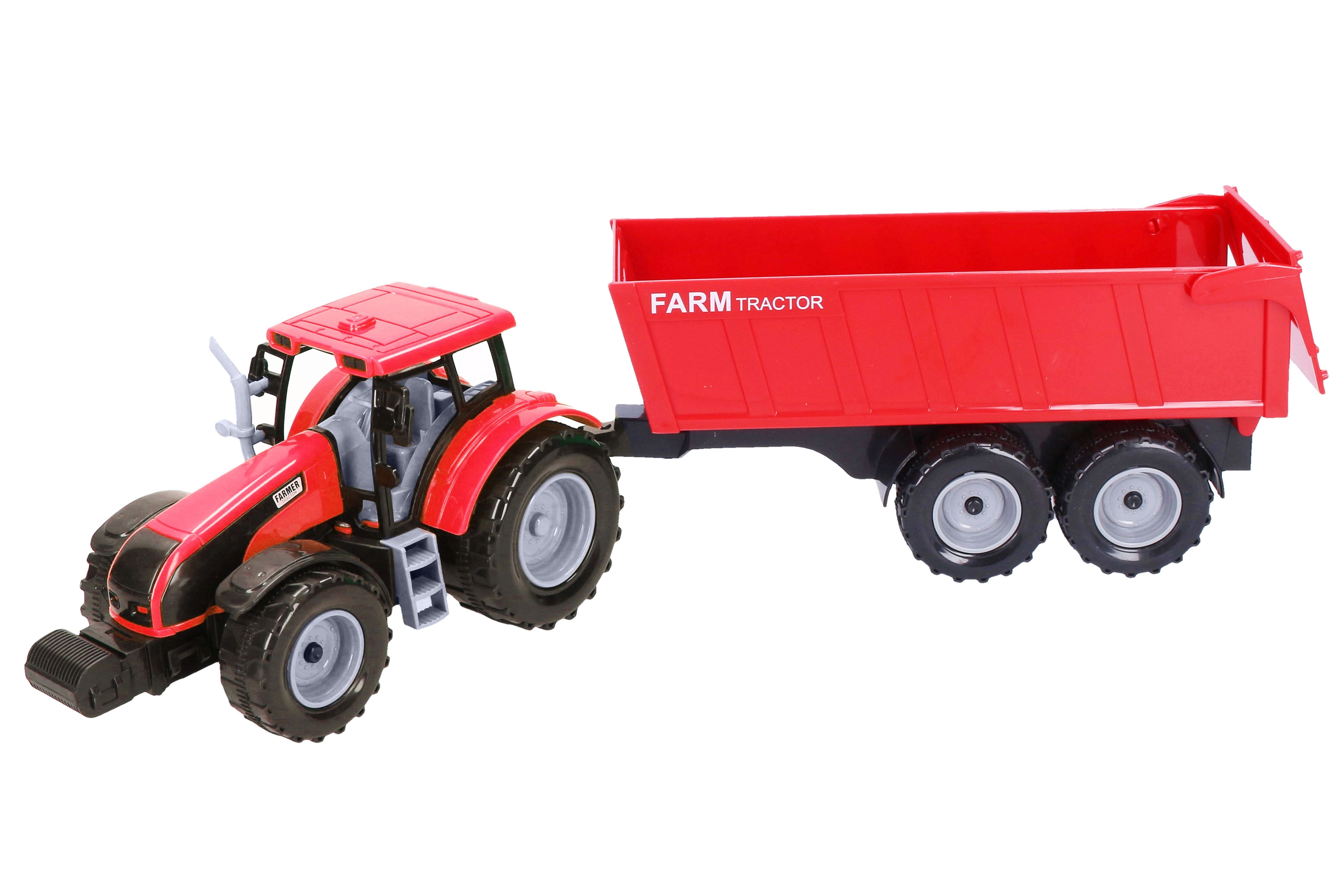 Ισχυρό τρακτέρ με ρυμουλκούμενο μήκους 42 εκ., ιδανικό για μικρούς αγρότες. Η κίνηση αδράνειας και το ανοιγόμενο πίσω μέρος του ρυμουλκούμενου προσφέρουν χαρά και ρεαλιστικό παιχνίδι.