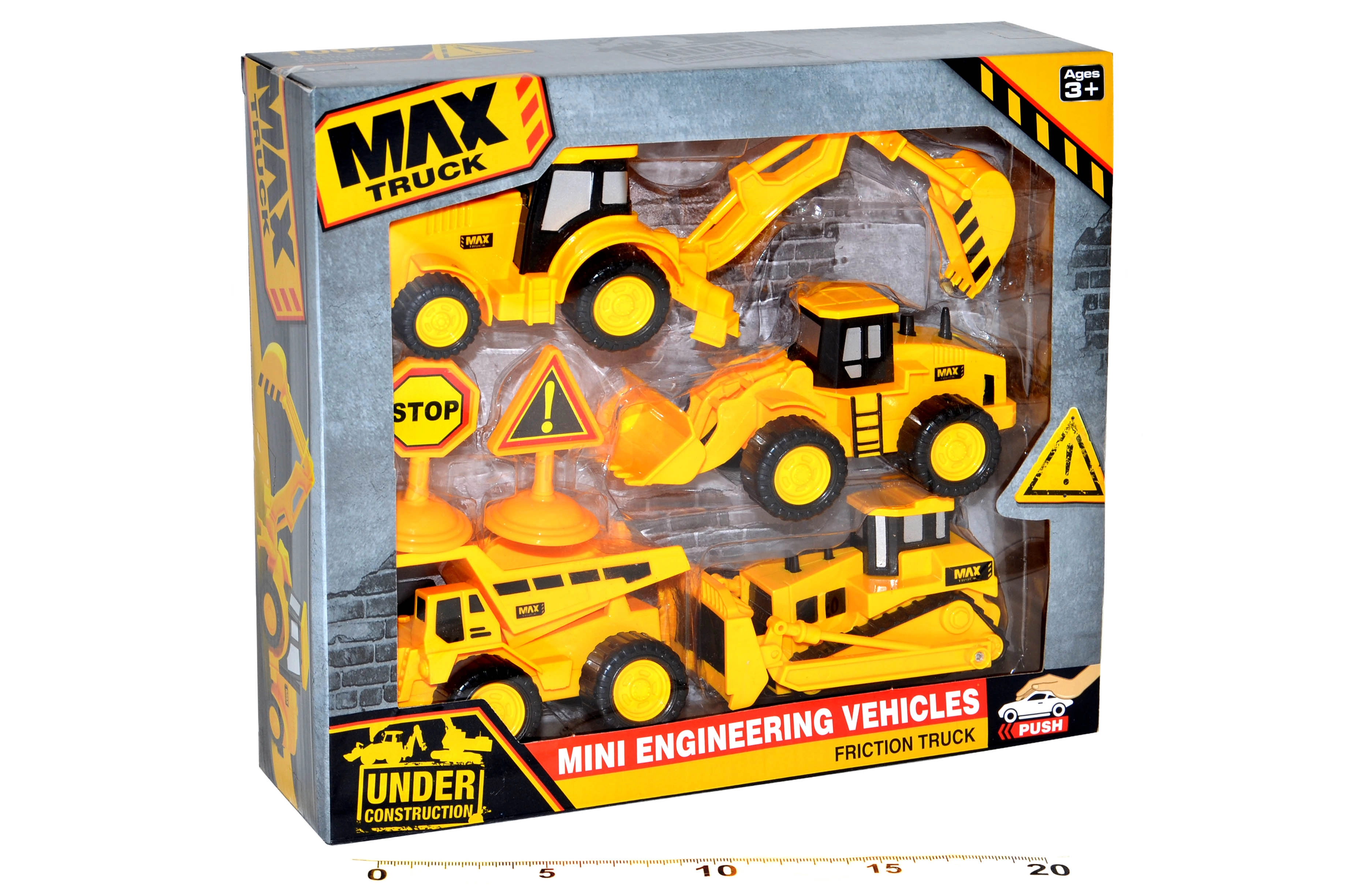 • Περιλαμβάνονται επίσης ανατρεπόμενο φορτηγό και πινακίδες σήμανσης, που εμπλουτίζουν τα σενάρια παιχνιδιού.