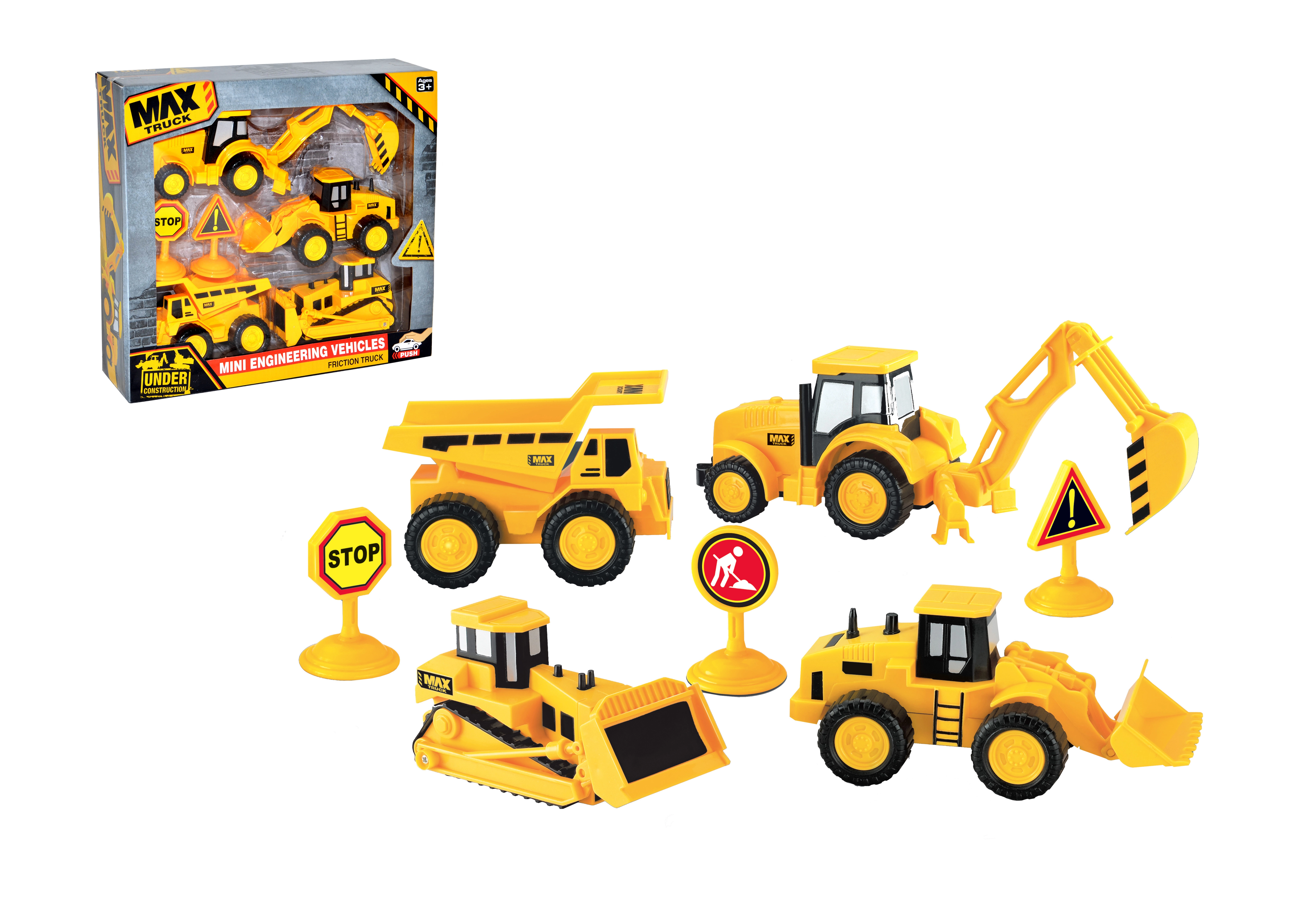 Σετ οχημάτων κατασκευών για μικρούς λάτρεις της κατασκευαστικής τεχνολογίας. Περιλαμβάνει τέσσερα διαφορετικά μηχανήματα, συμπεριλαμβανομένων μπουλντόζων και εκσκαφέων, που διευρύνουν τις δυνατότητες του παιχνιδιού.