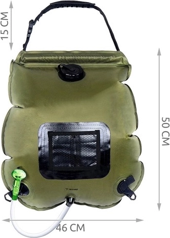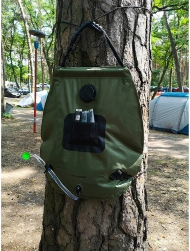 Το ηλιακό ντους χωρητικότητας 20 λίτρων προσφέρει μερικά λεπτά άνετης επίπλυσης μετά το άθλημα, το θαλασσινό μπάνιο ή στο κάμπινγκ. Το νερό θερμαίνεται αποκλειστικά με ηλιακή ενέργεια και η θερμοκρασία ελέγχεται εύκολα στο ενσωματωμένο θερμόμετρο (°C/°F). Η διάφανη πίσω πλευρά επιτρέπει τον έλεγχο της ποσότητας και της καθαρότητας του νερού.