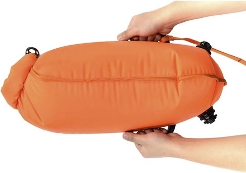 Πρακτικός συνδυασμός σημαδούρας κολύμβησης και αδιάβροχης θήκης, που επιτρέπει την αποθήκευση απαραίτητων αντικειμένων κατά τις δραστηριότητες στο νερό.