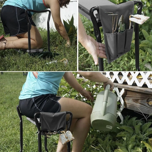 Ψάχνετε τρόπο να ανακουφίσετε το σώμα σας στις δουλειές του κήπου και ταυτόχρονα να έχετε τα πάντα τακτοποιημένα; Το κήπινο υποπόδιο και κάθισμα GARDLOV συνδυάζει άνεση, σταθερότητα και λειτουργικότητα σε ένα. Ο στιβαρός σιδερένιος σκελετός με φαρδιά πόδια προσφέρει σιγουριά ακόμη και σε ανώμαλο έδαφος, ενώ το παχύ μαξιλάρι από αφρό EVA απορροφά την πίεση στα γόνατα και αυξάνει την άνεση στο πολύωρο κηπουρικό έργο.