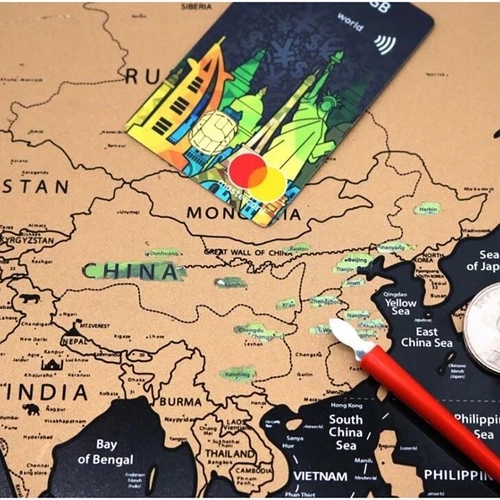 Ο ξυστός χάρτης σας επιτρέπει να σημειώσετε τις χώρες που επισκεφθήκατε και να αποκαλύψετε κρυφές γεωγραφικές λεπτομέρειες και σημαίες κάτω από το στρώμα.