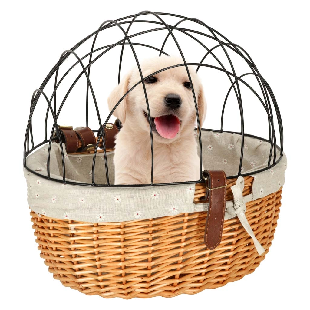 Αυτό το ψάθινο καλάθι για το τιμόνι συνδυάζει ασφάλεια, άνεση και διαχρονική εμφάνιση. Ο στιβαρός μεταλλικός θόλος προστατεύει το κατοικίδιο κατά την διαδρομή και ταυτόχρονα του επιτρέπει να κοιτάζει έξω. Χάρη στην ποιοτική ψάθα, το καλάθι είναι ανθεκτικό και σταθερό, ενώ τα υφασμάτινα τελειώματα αυξάνουν την άνεση και προστατεύουν τις άκρες.