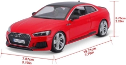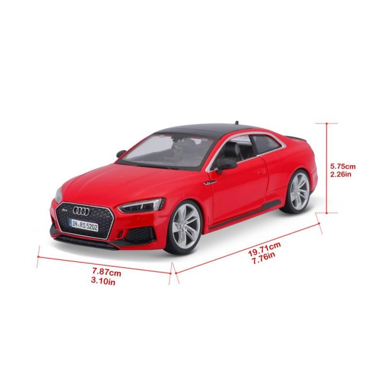 Το μοντέλο Bburago AUDI RS 5 COUPÉ 1:24 προσφέρει πιστή αναπαραγωγή του εμβληματικού σπορ αυτοκινήτου σε κομψό κόκκινο χρώμα. Χάρη στον συνδυασμό μετάλλου και πλαστικών λεπτομερειών, δείχνει εξαιρετικά ρεαλιστικό, συμπεριλαμβανομένων των προσεγμένων ζαντών, του εσωτερικού και της χαρακτηριστικής μάσκας του ψυγείου.