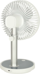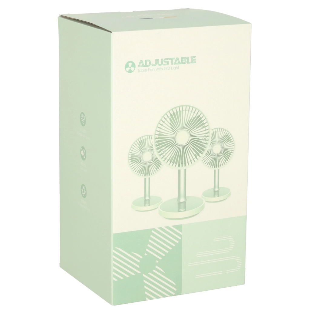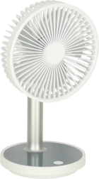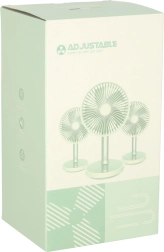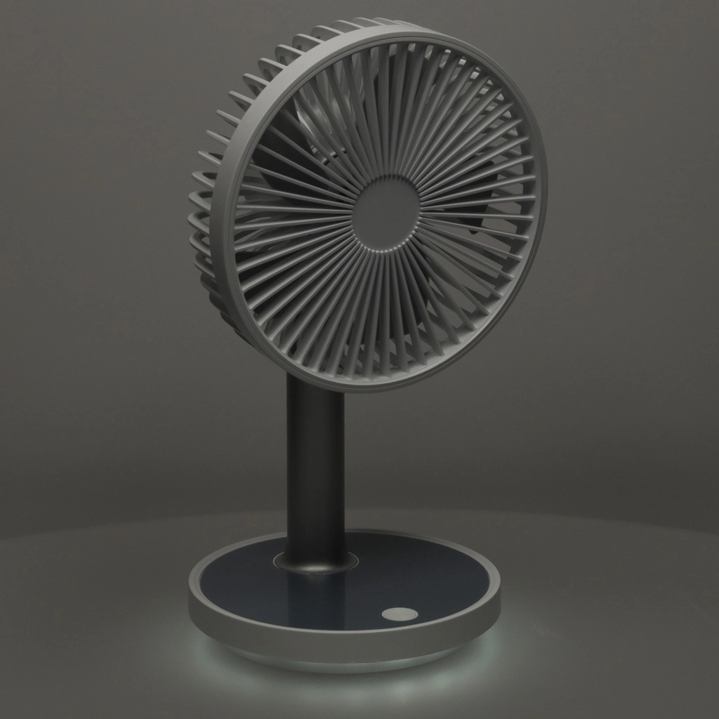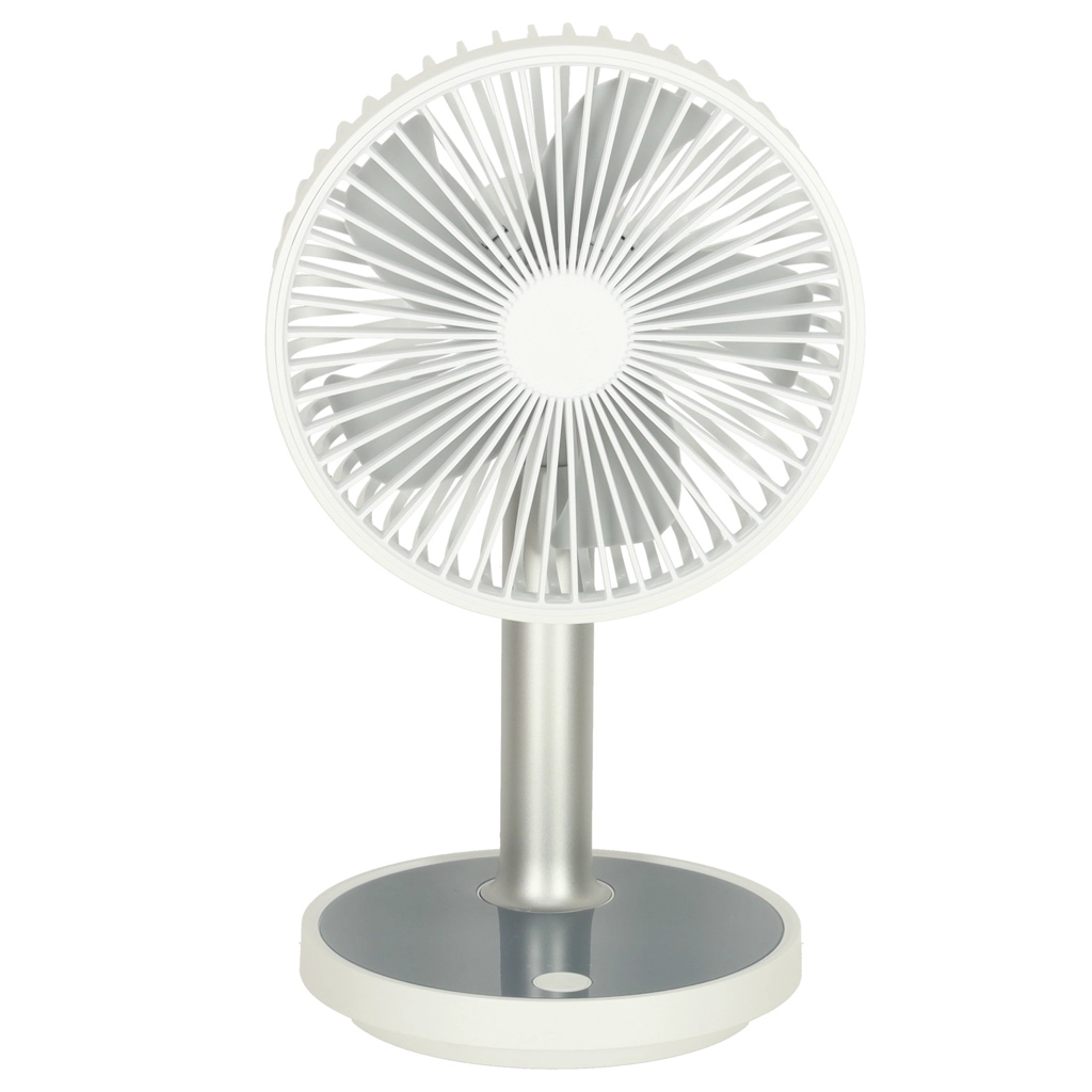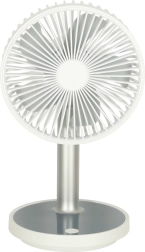 Συμπαγής και κομψός επιτραπέζιος ανεμιστήρας με επαναφορτιζόμενη μπαταρία που προσφέρει 4 επίπεδα ισχύος, αθόρυβη λειτουργία και LED φωτισμό στη βάση. Χάρη στην τροφοδοσία μέσω USB‑C και το ρυθμιζόμενο ύψος 30–38 cm, είναι ιδανικός για γραφείο, κομοδίνο και παιδικό δωμάτιο. Με μία φόρτιση λειτουργεί έως και 7 ώρες.