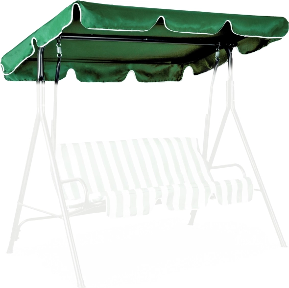 Η σκεπή είναι κατασκευασμένη από πολυεστέρα 160 g/m² και διαθέτει επίστρωση PA, που ενισχύει την αδιαβροχοποίηση και προστατεύει τα χρώματα από την UV ακτινοβολία. Η πράσινη απόχρωση με διακοσμητικά βολάν δίνει στον κήπο σας φρέσκια εμφάνιση.