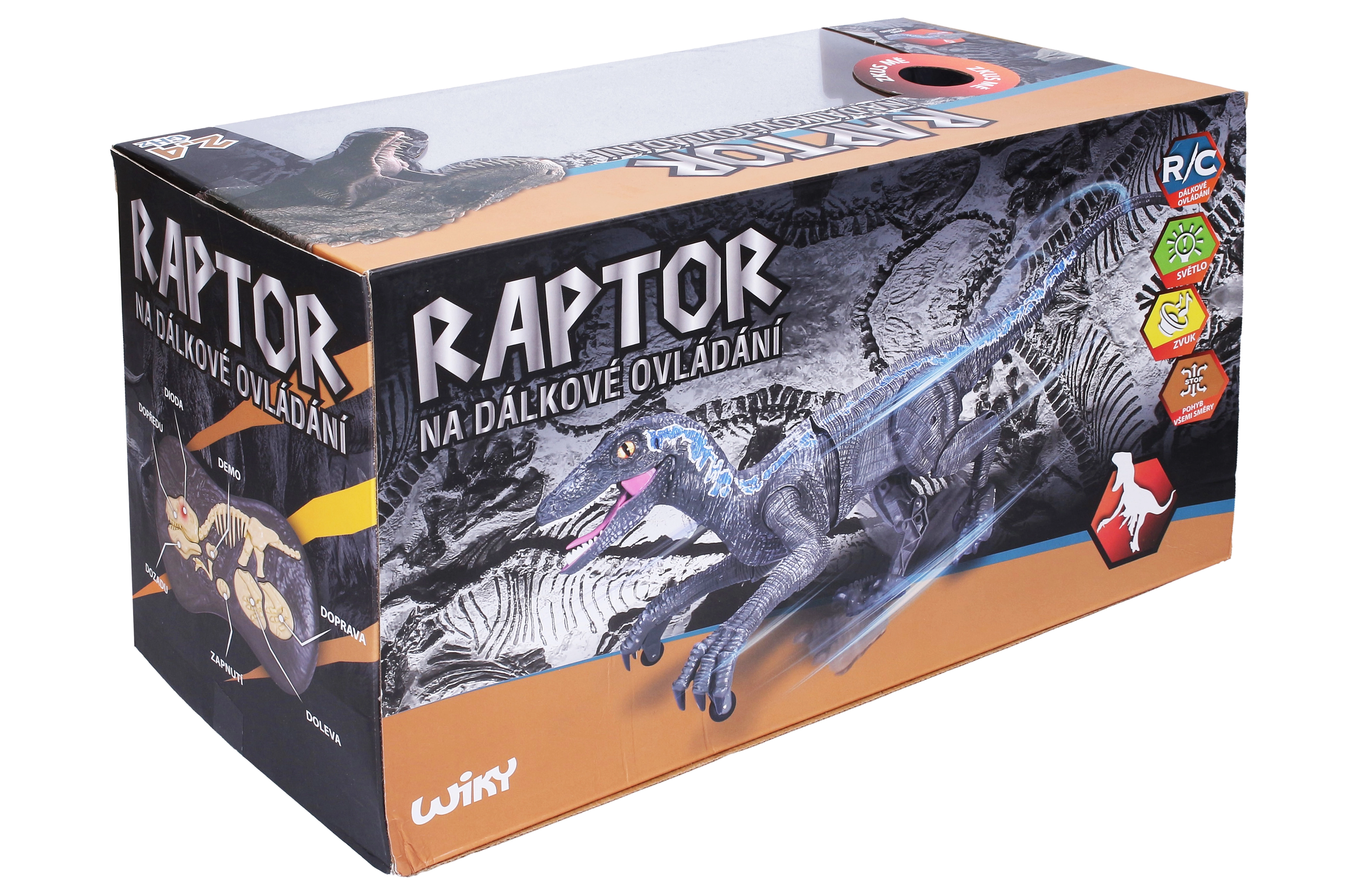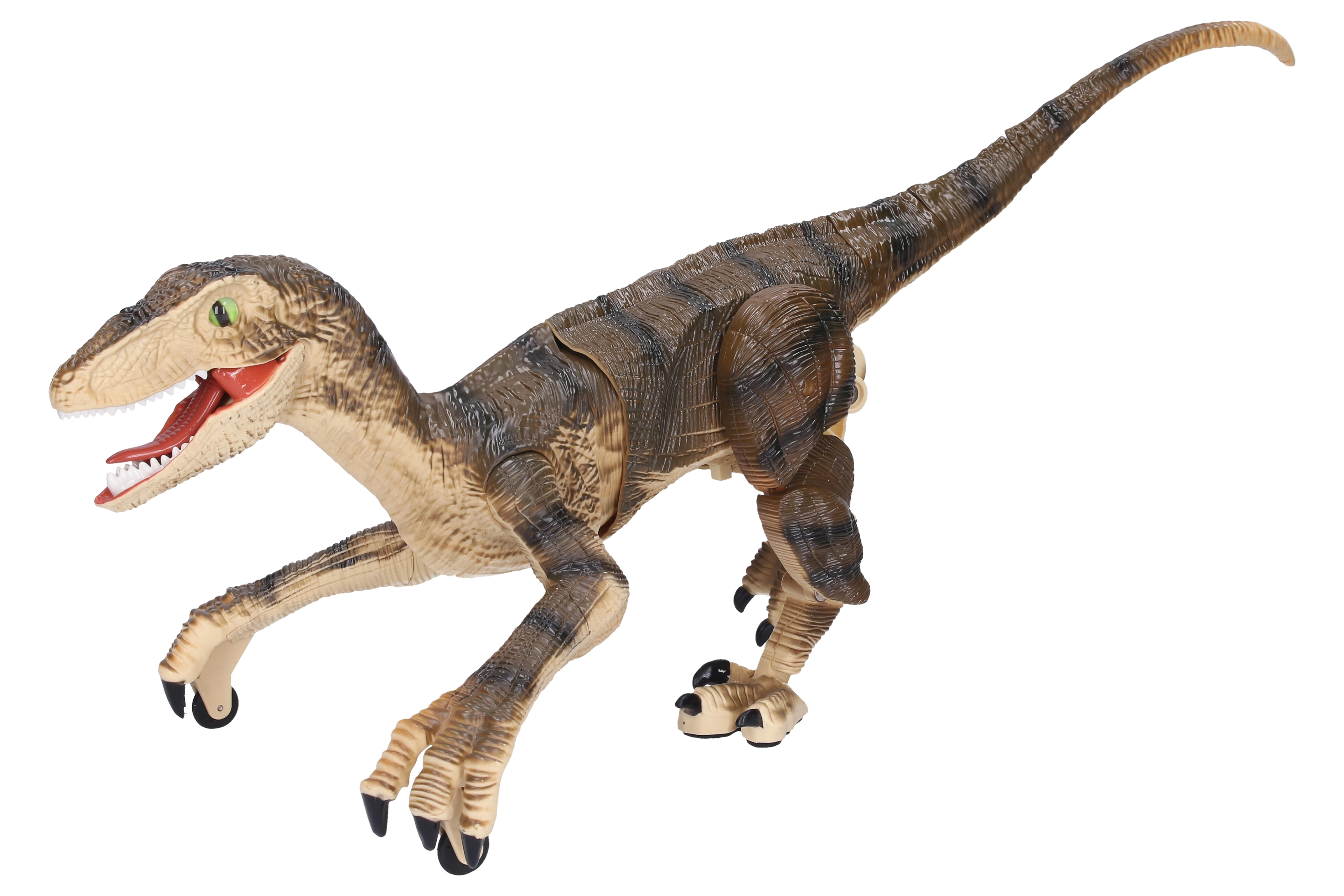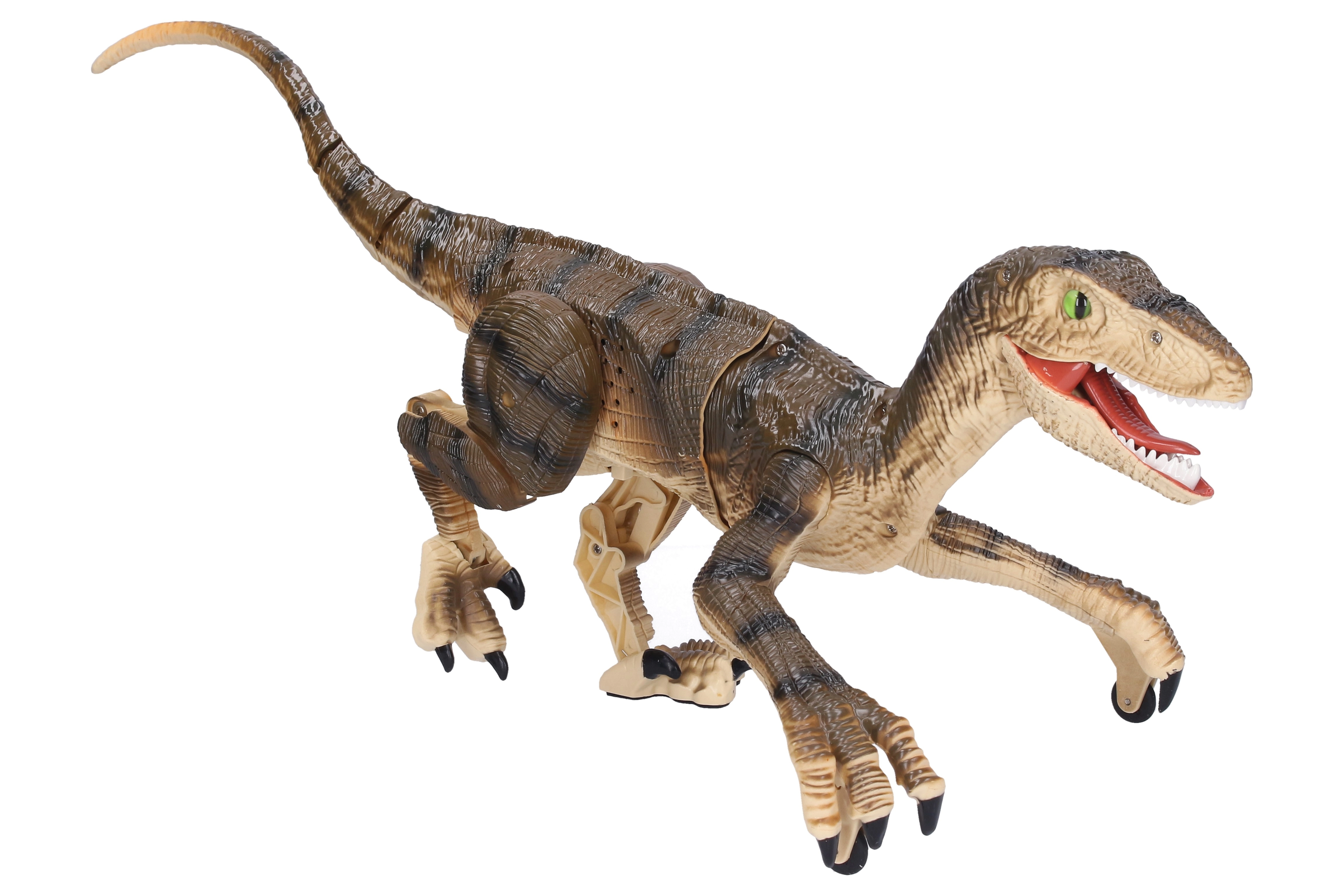 Αυτός ο προσεγμένα σχεδιασμένος ράπτορας υπακούει στις εντολές σου μέσω τηλεχειριστηρίου. Μπορεί να κινείται φυσικά όπως ένας πραγματικός θηρευτής και τα φωτεινά εφέ του προσθέτουν ακόμη μεγαλύτερη ένταση στο παιχνίδι – στο σκοτάδι «φωτίζει» το «θήραμα» και το συνοδεύει με τον χαρακτηριστικό βρυχηθμό δεινόσαυρου.
