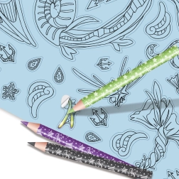 - 12 ξυλομπογιές και 80 στένσιλ για ατελείωτους συνδυασμούς