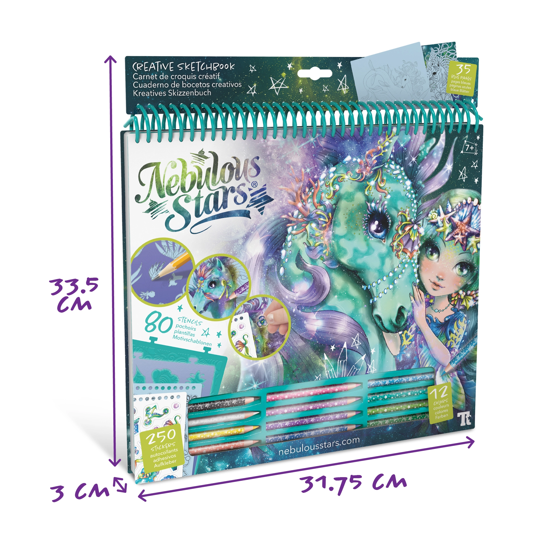 Ανακαλύψτε τον μαγικό κόσμο των NEBULOUS STARS με το δημιουργικό sketchbook σε πράσινο χρώμα. Το σετ προσφέρει τα πάντα για δημιουργία – από 250 αυτοκόλλητα, 12 ξυλομπογιές, έως 80 στένσιλ και 35 φύλλα με εικόνες. Χάρη στους οδηγούς για 12 τεχνικές σχεδίασης, τα παιδιά αναπτύσσουν τη φαντασία, τη λεπτή κινητικότητα και την αίσθηση των χρωμάτων. Ιδανικό δώρο για μικρές καλλιτέχνιδες από 7 ετών.