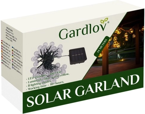 Η ηλιακή γιρλάντα περιλαμβάνει 100 διακοσμητικές μπάλες από ποιοτικό πολυστυρένιο με λεπτό, αφρώδες εφέ που δημιουργεί ευχάριστη φωτεινή ατμόσφαιρα.