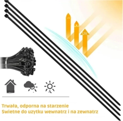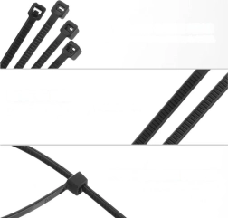 Σετ 100 μαύρων δεματικών καλωδίων πλάτους 3,6 mm, απαραίτητο εργαλείο για το σπίτι, τον κήπο ή το εργαστήριο. Εύκολη χρήση και υψηλή αντοχή εξασφαλίζουν την ευρεία χρησιμότητά τους.