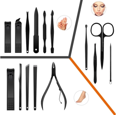 Το σετ περιλαμβάνει εργαλεία για διαμόρφωση νυχιών, επωνυχίων, καθώς και περιποίηση χεριών, ποδιών και προσώπου.