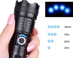Ισχυρός φακός LED από αλουμίνιο αεροπορικού τύπου προσφέρει δυνατή φωτεινή απόδοση, αδιαβροχοποίηση και 5 λειτουργίες φωτισμού για κάθε περίσταση. Χάρη στη φόρτιση USB‑C, τη λειτουργία ZOOM και τη δυνατότητα τροφοδότησης με μπαταρία 18650 ή 3× AAA, είναι ιδανικός για εκδρομές, κάμπινγκ και για το εργαστήριο. Η άνετη χρήση με ένα μόνο κουμπί, ο δείκτης κατάστασης φόρτισης και τα πρακτικά αξεσουάρ, συμπεριλαμβανομένης θήκης, εξασφαλίζουν αξιόπιστη χρήση στο σπίτι και στο πεδίο.