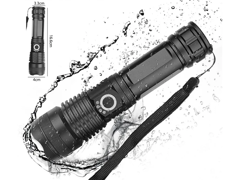 Σώμα από αλουμίνιο αεροπορικού τύπου και αδιάβροχη σχεδίαση που αντέχουν στη βροχή και σε απαιτητικές συνθήκες. Αντιολισθητική λαβή και λουράκι για σταθερό κράτημα.