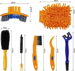 Πλήρες σετ καθαρισμού ποδηλάτου 7‑σε‑1 για γρήγορη συντήρηση ολόκληρου του ποδηλάτου. Περιλαμβάνει βούρτσες για αλυσίδα, κασέτα, ελαστικά και στενές σχισμές και γάντι μικροϊνών για απαλό πλύσιμο. Τα εργονομικά χερούλια εξασφαλίζουν άνετη χρήση και τα υλικά δεν γρατζουνίζουν τις επιφάνειες. Ιδανικό για αστικά, ορεινά, δρόμου και ηλεκτρικά ποδήλατα.