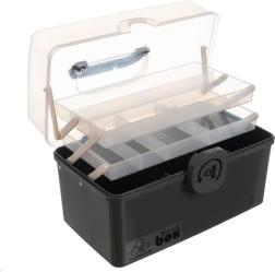 Τα διώροφα, αναδιπλούμενα ράφια με χωρίσματα είναι ιδανικά για δισκία, αλοιφές, επιθέματα και καλλυντικά. Ο κάτω θάλαμος προσφέρει άφθονο χώρο για μεγαλύτερα μπουκάλια και συσκευασίες. Η ελαφριά κατασκευή και η εργονομική λαβή διευκολύνουν τη μεταφορά στο σπίτι και στα ταξίδια.