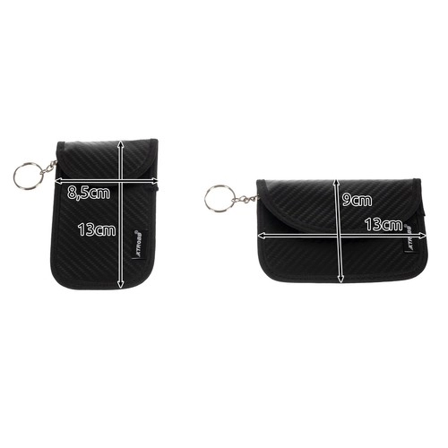 Κάθε θήκη διαθέτει δύο ξεχωριστές θήκες – μία βαθύτερη με κρίκο για το κλειδί αυτοκινήτου (θωρακισμένη) και μία μικρότερη για κάρτες πληρωμής και πρόσβασης. Η ανθεκτική επιφάνεια PU με carbon εμφάνιση, η απαλή επένδυση από πολυεστέρα και το ισχυρό velcro προστατεύουν το περιεχόμενο από φθορά και τυχαία πτώση. Το σετ περιλαμβάνει κάθετη και οριζόντια εκδοχή· η οριζόντια διαθέτει επιπλέον πίσω κλιπ για στερέωση σε τσάντα ή σακίδιο.