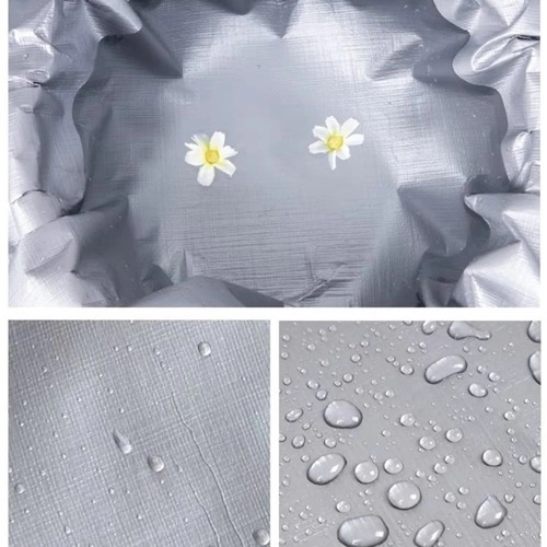 Αυτό το πολυχρηστικό κάλυμμα σε ασημί-γκρι χρώμα είναι κατασκευασμένο από HDPE (πολυαιθυλένιο υψηλής πυκνότητας) με επικάλυψη LDPE, γεγονός που το καθιστά στιβαρό, ανθεκτικό στο σκίσιμο και ταυτόχρονα πλήρως αδιάβροχο. Οι ενισχυμένες άκρες με συγκολλημένα κανάλια και κορδόνι PP αυξάνουν τη σταθερότητα κατά το τέντωμα και προστατεύουν από μηχανικές φθορές.