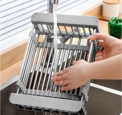 Αυτό το επεκτεινόμενο στραγγιστήρι πάνω από τον νεροχύτη διευρύνει την επιφάνεια εργασίας και κάνει πιο αποδοτικές τις καθημερινές εργασίες κουζίνας. Χάρη στην τηλεσκοπική κατασκευή προσαρμόζεται στους περισσότερους νεροχύτες και επιτρέπει άνετο ξέπλυμα και στέγνωμα φρούτων, λαχανικών και σκευών απευθείας πάνω από τη γούρνα.