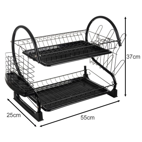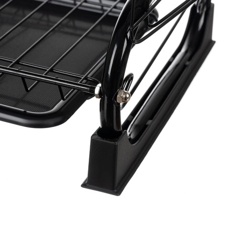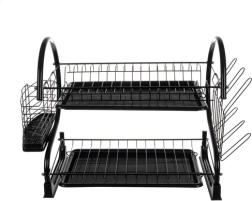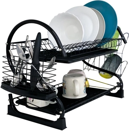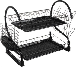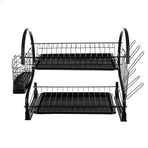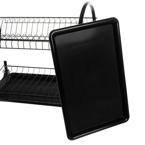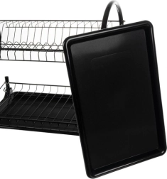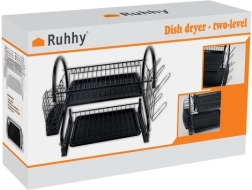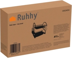 Ζήστε την επανάσταση στο στέγνωμα των σκευών με το διπλό στραγγιστήριο Ruhhy, που προσφέρει στιβαρή κατασκευή από μέταλλο με μοντέρνα μαύρη εμφάνιση. Χάρη στη διπλή κατασκευή αξιοποιείτε πλήρως τον χώρο της κουζίνας: το επάνω επίπεδο είναι ιδανικό για 16 πιάτα, ενώ το κάτω επίπεδο είναι τέλειο για μπολ, κούπες και ποτήρια. Κάθε επίπεδο διαθέτει τον δικό του δίσκο συλλογής νερού.