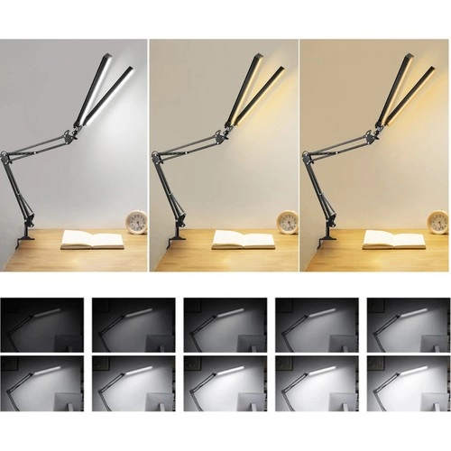 Το φωτιστικό διαθέτει διπλή πηγή φωτός, την οποία μπορείτε να ρυθμίζετε ανεξάρτητα ώστε να φωτίζετε ταυτόχρονα δύο διαφορετικούς χώρους εργασίας. Ο βραχίονας είναι πλήρως ρυθμιζόμενος, εξασφαλίζοντας υψηλή ευελιξία χρήσης.