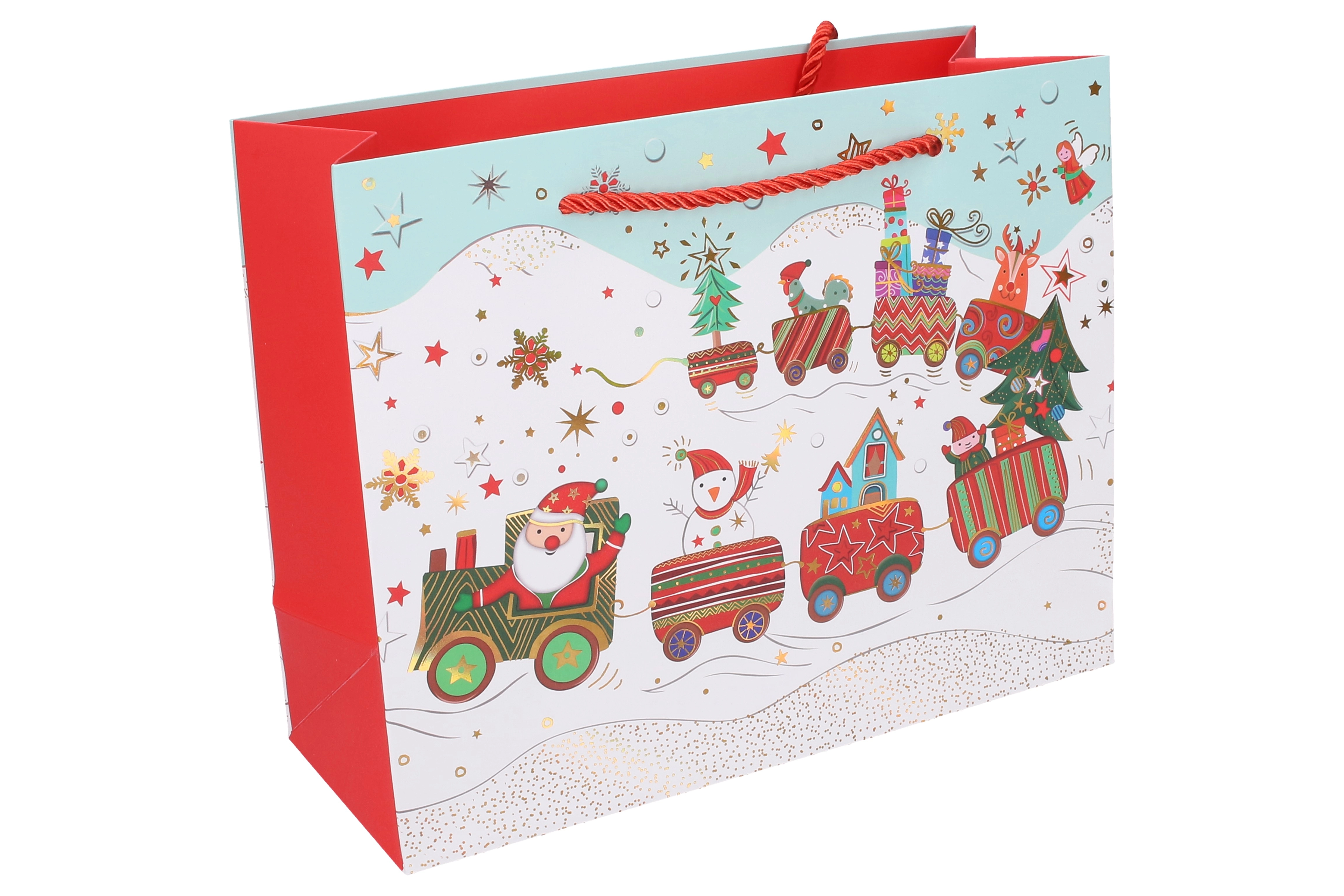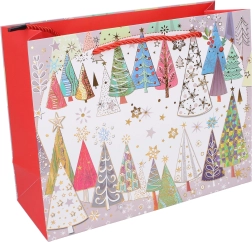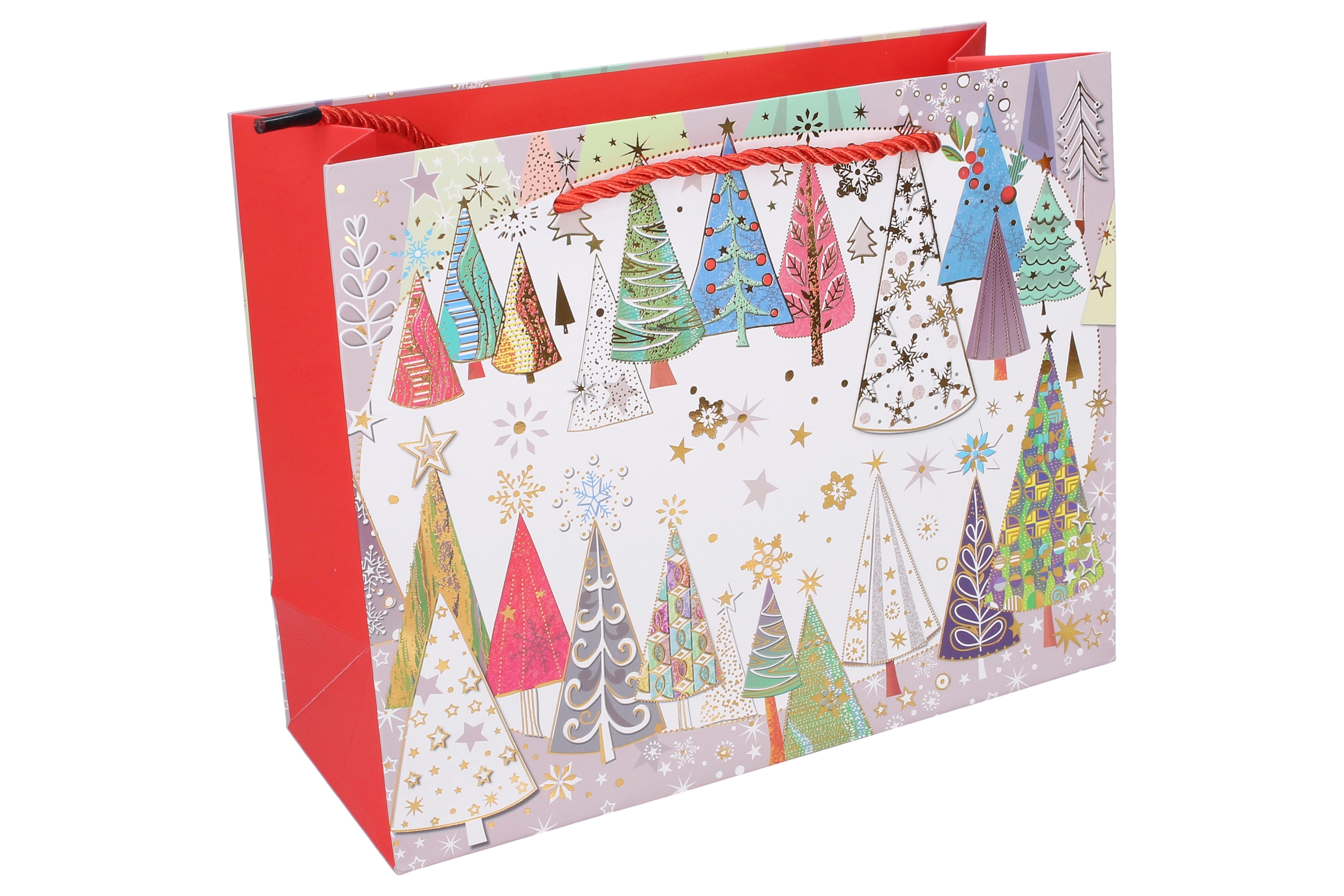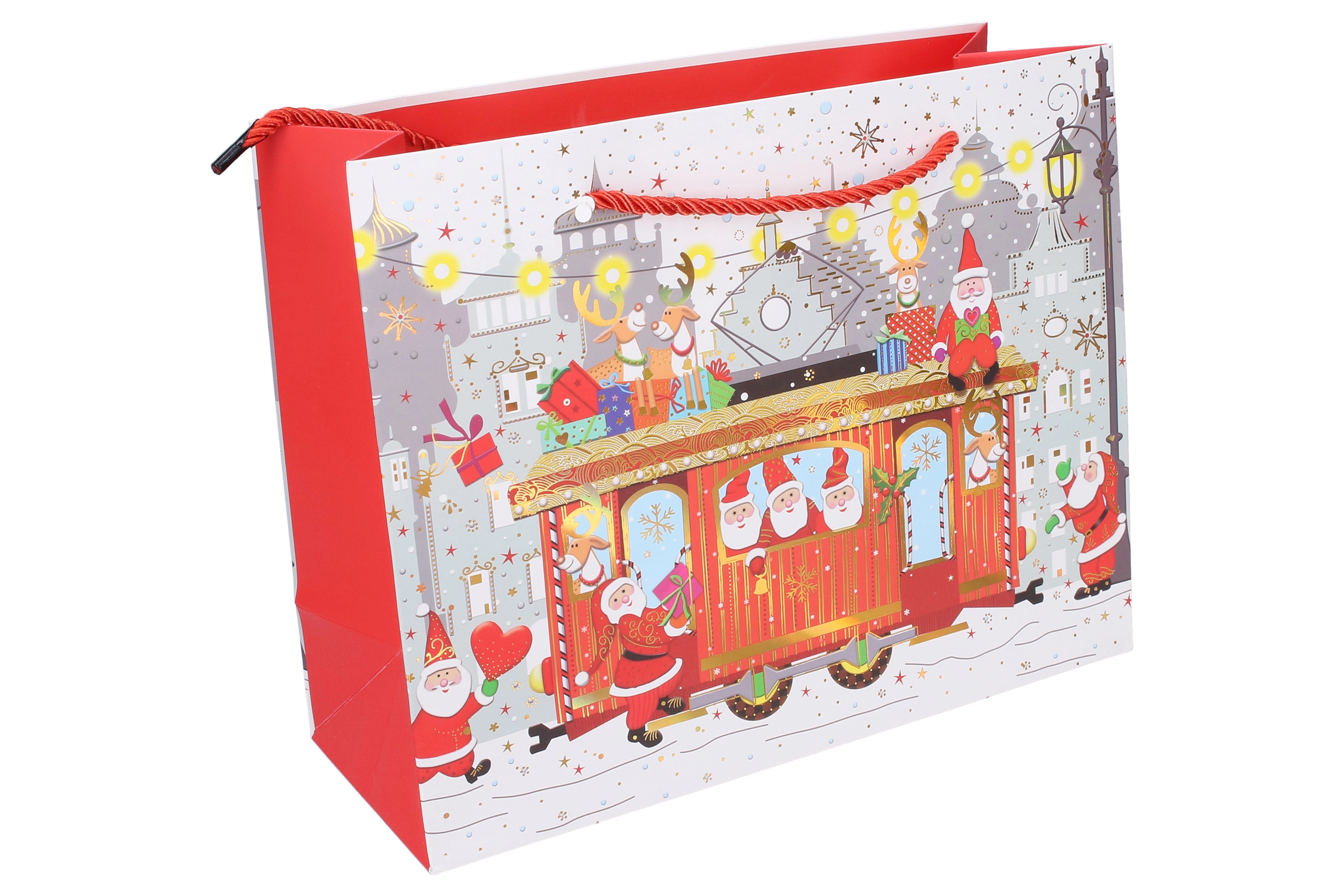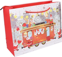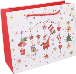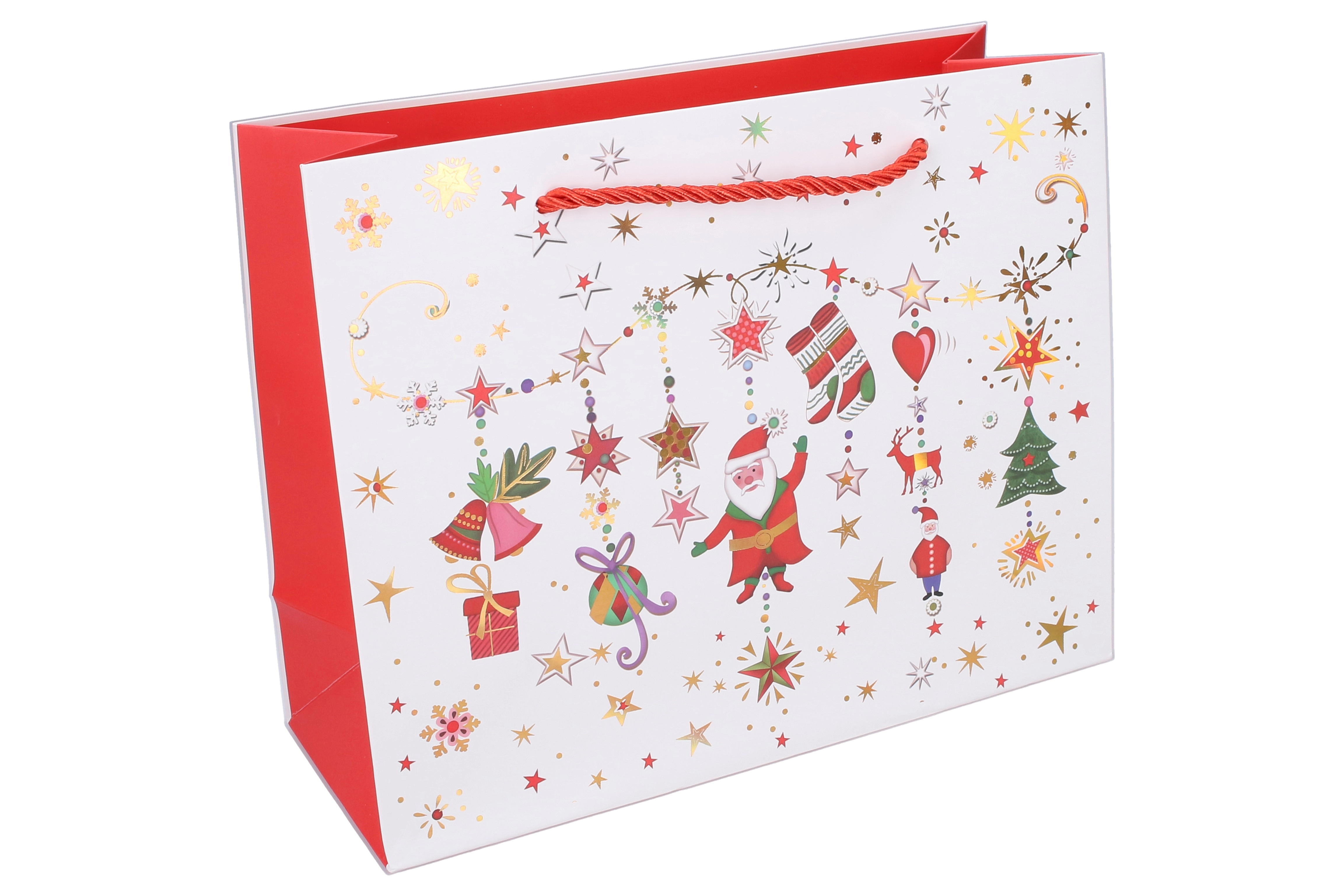 Αυτή η χριστουγεννιάτικη τσάντα δώρου είναι εξαιρετική επιλογή για κομψό και γρήγορο τύλιγμα δώρων. Οι διαστάσεις 24,5 × 19,5 × 9,5 cm την καθιστούν πρακτικό μέγεθος για μικρότερα αντικείμενα, κεριά, αξεσουάρ ή σετ καλλυντικών. Τέσσερα διαφορετικά γιορτινά μοτίβα δίνουν σε κάθε δώρο μοναδική εμφάνιση.