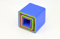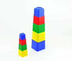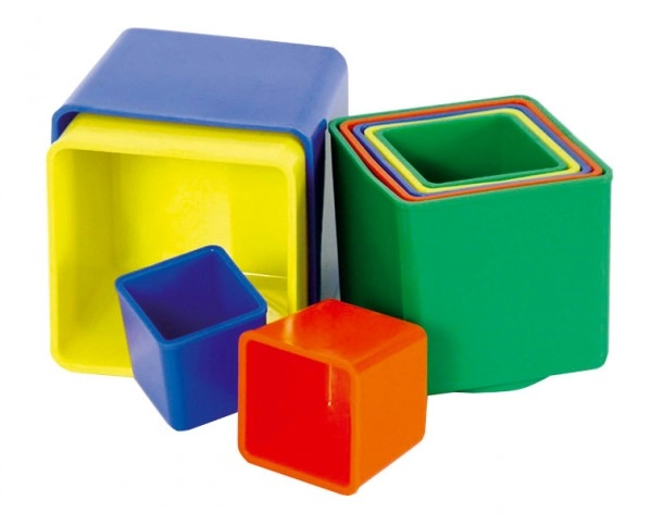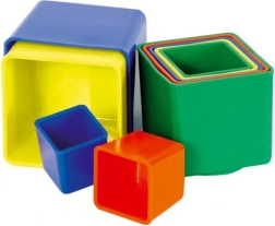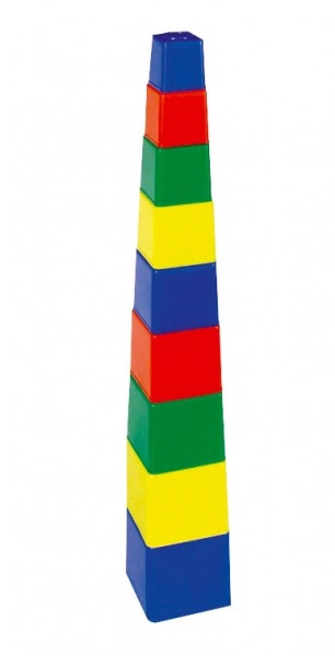 Εννέα πολύχρωμα πλαστικά τουβλάκια για τους μικρότερους υποστηρίζουν την ανάπτυξη της λεπτής κινητικότητας, της λογικής σκέψης και του συντονισμού χεριού–ματιού. Οι κοίνοι κύβοι μπορούν να στοιβάζονται σε πύργο ή να μπαίνουν ο ένας μέσα στον άλλον, ο μεγαλύτερος έχει 9 × 9 × 9 cm. Κατάλληλο από 1 έτους, κατασκευασμένο στην Τσεχία. Η χρωματική εκδοχή είναι σε μείγμα χρωμάτων ανάλογα με τη διαθεσιμότητα αποθέματος.