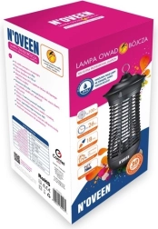 Ισχυρή λάμπα κατά των εντόμων με ισχύ 18 W και προστασία IPX4 για εσωτερική και εξωτερική χρήση. Ο συνδυασμός UV-A φωτός 365 nm και υψηλής τάσης πλέγματος εξοντώνει αποτελεσματικά κουνούπια, μύγες και μυγοσκορίδες. Ανθεκτική μεταλλική και μη εύφλεκτη κατασκευή ABS, αθόρυβη λειτουργία, χωρίς χημικά και εύκολη συντήρηση χάρη στο αποσπώμενο δοχείο.