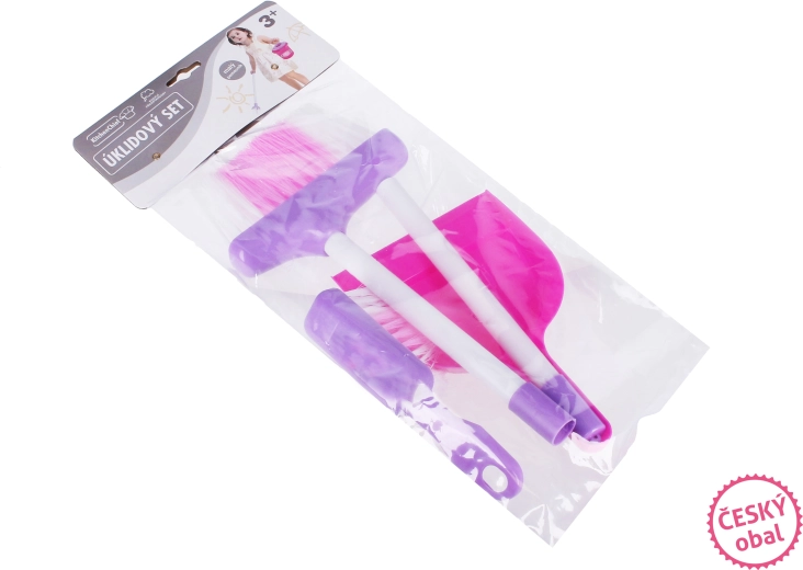 Πρακτικό παιδικό σετ καθαρισμού που αποτελείται από 3 τεμάχια – φαράσι, βουρτσάκι και πτυσσόμενη σκούπα. Κατασκευασμένο από ανθεκτικό πλαστικό σε ροζ-λευκό χρώμα, ιδανικό για παιχνίδι ρόλων στο σπίτι και ανάπτυξη λεπτής κινητικότητας. Η πτυσσόμενη σκούπα χωρά εύκολα σε μικρό κουτί παιχνιδιών.