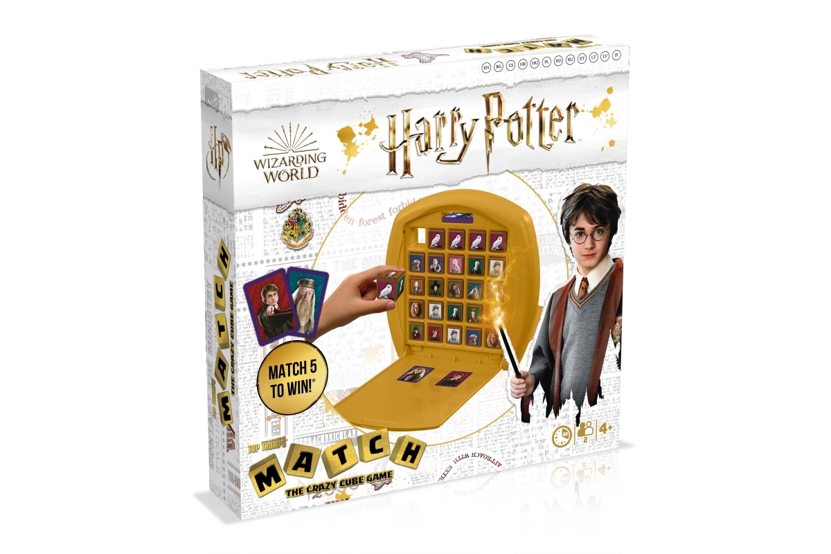 Μπείτε σε ένα μαγικό αγώνα ευφυΐας με το Match από τον κόσμο του Χάρι Πότερ. Στόχος είναι να περιστρέφετε έξυπνα και να τοποθετείτε τα ζάρια ώστε να δημιουργήσετε μια σειρά από πέντε ίδιους χαρακτήρες ή σύμβολα πριν από τον αντίπαλό σας. Κάθε κίνηση μπορεί να φέρει νίκη ή ανατροπή – δεν χτίζετε μόνο τη δική σας γραμμή, αλλά ταυτόχρονα ματαιώνετε τα σχέδια του αντιπάλου.