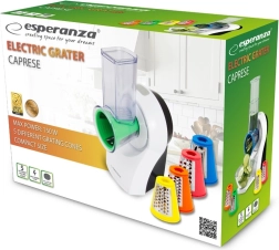 Ηλεκτρικός κόφτης Esperanza είναι ιδανικός για θρυμματισμό φρούτων, λαχανικών, σκληρού τυριού, σοκολάτας, ξηρών καρπών και για την παρασκευή τρίμματος. Με τα πέντε ανταλλάξιμα εξαρτήματά του ρυθμίζετε το σχήμα και το πάχος των θρυμματισμένων προϊόντων ανάλογα με τις ανάγκες του εκάστοτε πιάτου.