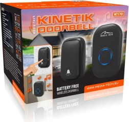 Χωρίς καλώδια και χωρίς αλλαγή μπαταριών. Το κινητικό κουδούνι MT5701 αξιοποιεί την ενέργεια από το μηχανικό πάτημα του κουμπιού, την οποία μετατρέπει σε ηλεκτρική για την αποστολή σήματος στον δέκτη στην πρίζα. Η εγκατάσταση είναι γρήγορη και καθαρή – τοποθετείτε το κουμπί δίπλα στην πόρτα ή την καγκελόπορτα και συνδέετε τον δέκτη στην ηλεκτρική πρίζα.